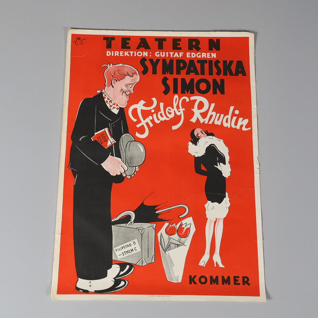 4499752. THEATRE POSTER, “Sympathetic Simon”, J. Olséns Litogr. Anst. Sthlm.