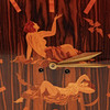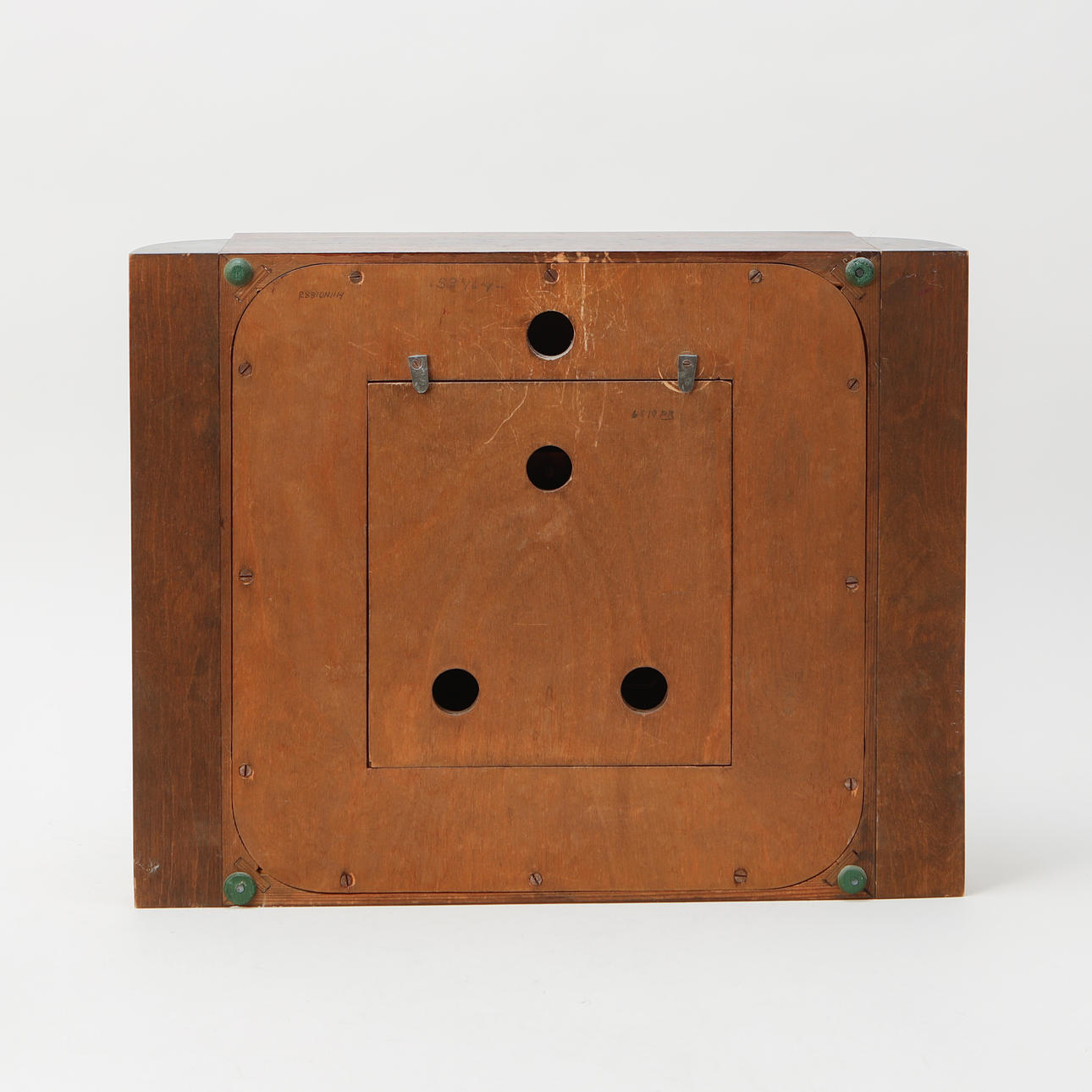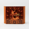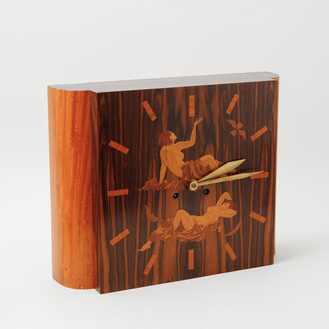 Decor of wrapped women, veneered in different types of wood. Length 41,5 cm, width 11 cm, height 32,5 cm.