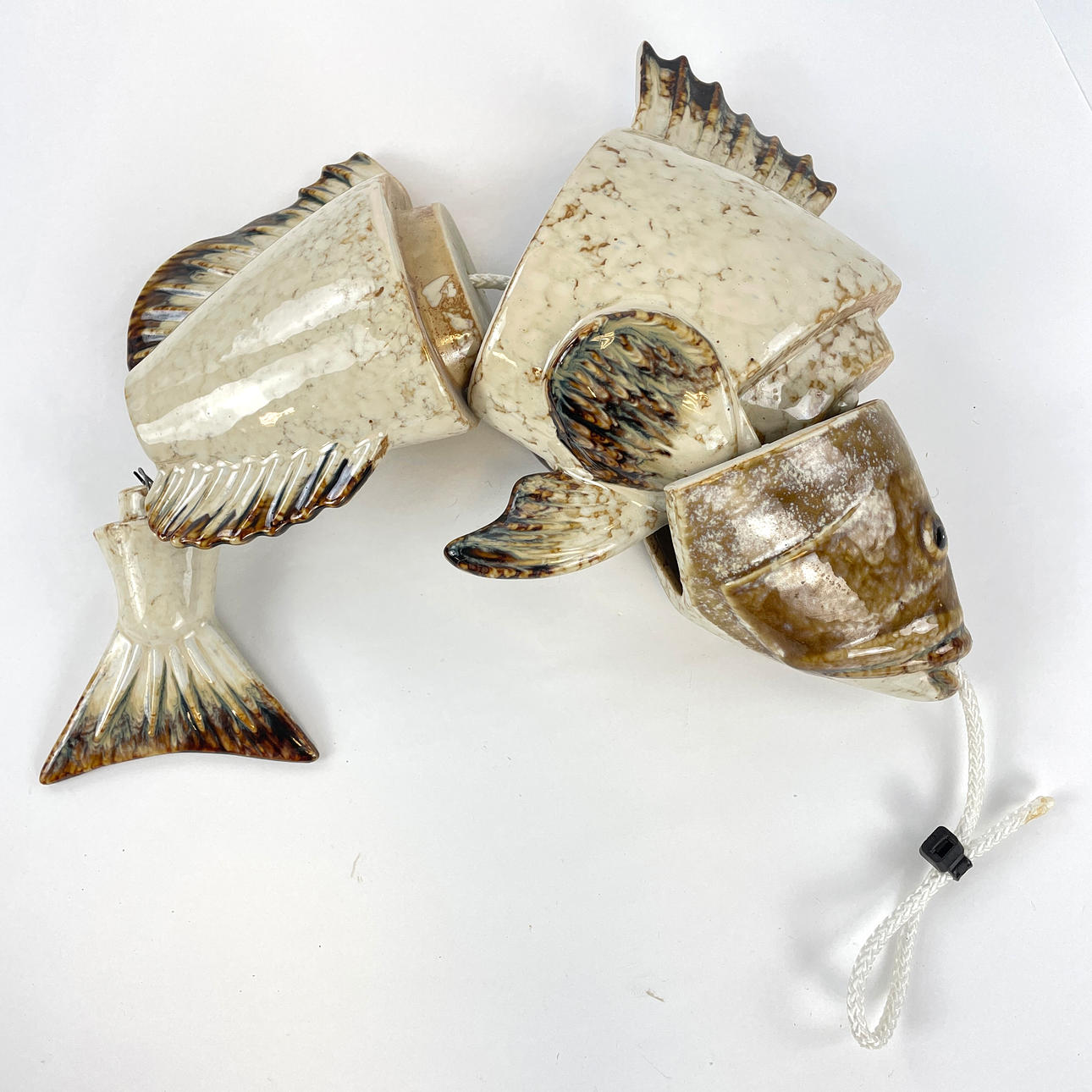 Figurine in the form of a four-part fish in glazed ceramics, with suspension.