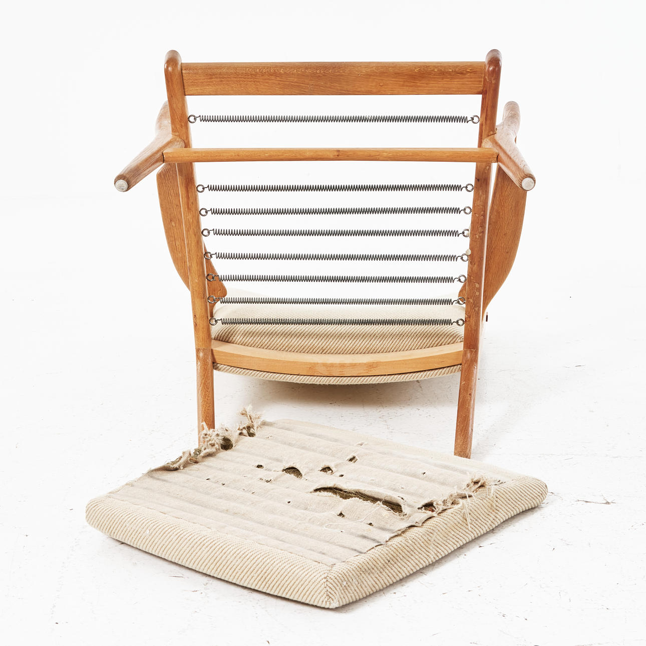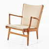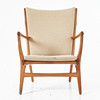 Oak, dressed in beige wool upholstery, model designed 1952