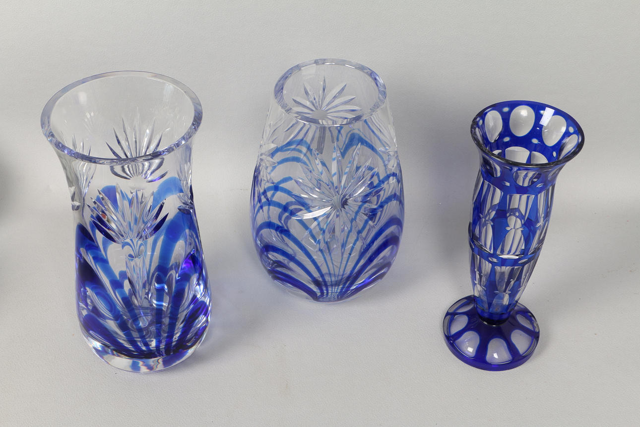4504177. THREE BOHEMIAN CRYSTAL VASES (3).