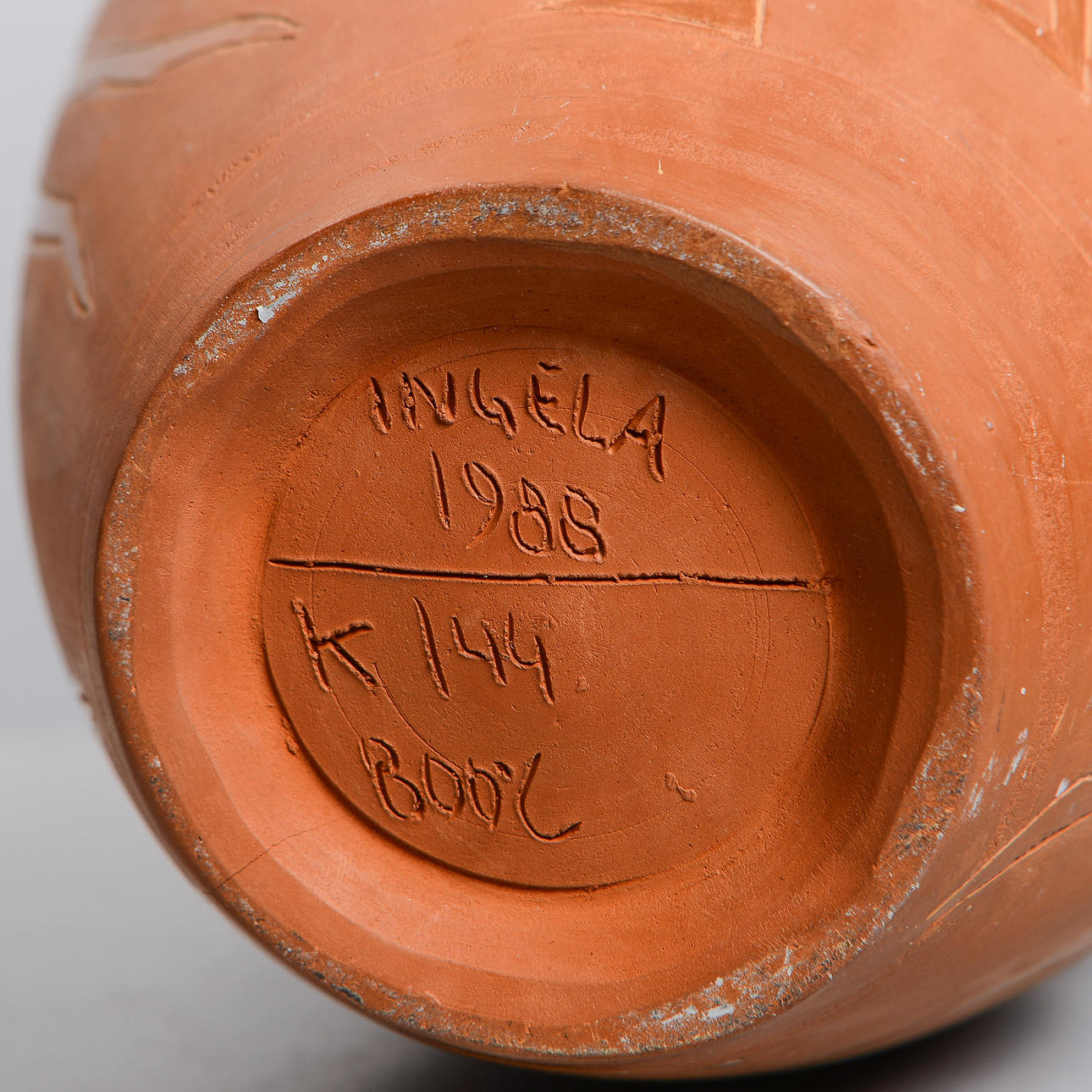 Ceramics. With abstract decor. Signed “Ingela K 144". Height 34 cm. Diameter 17 cm.