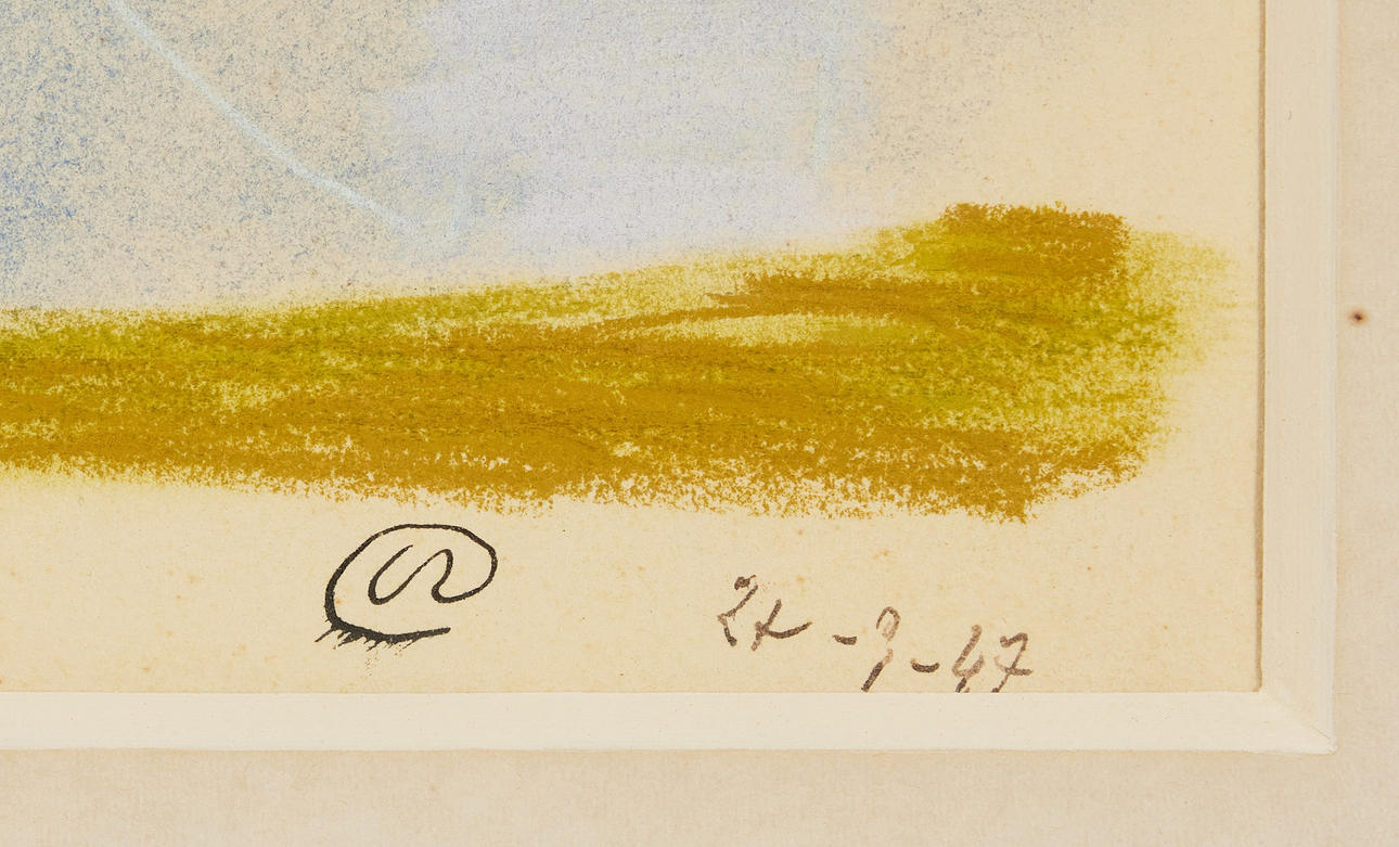 LENNART RODHE. “The Harbour”, pastel, signed and dated -47.