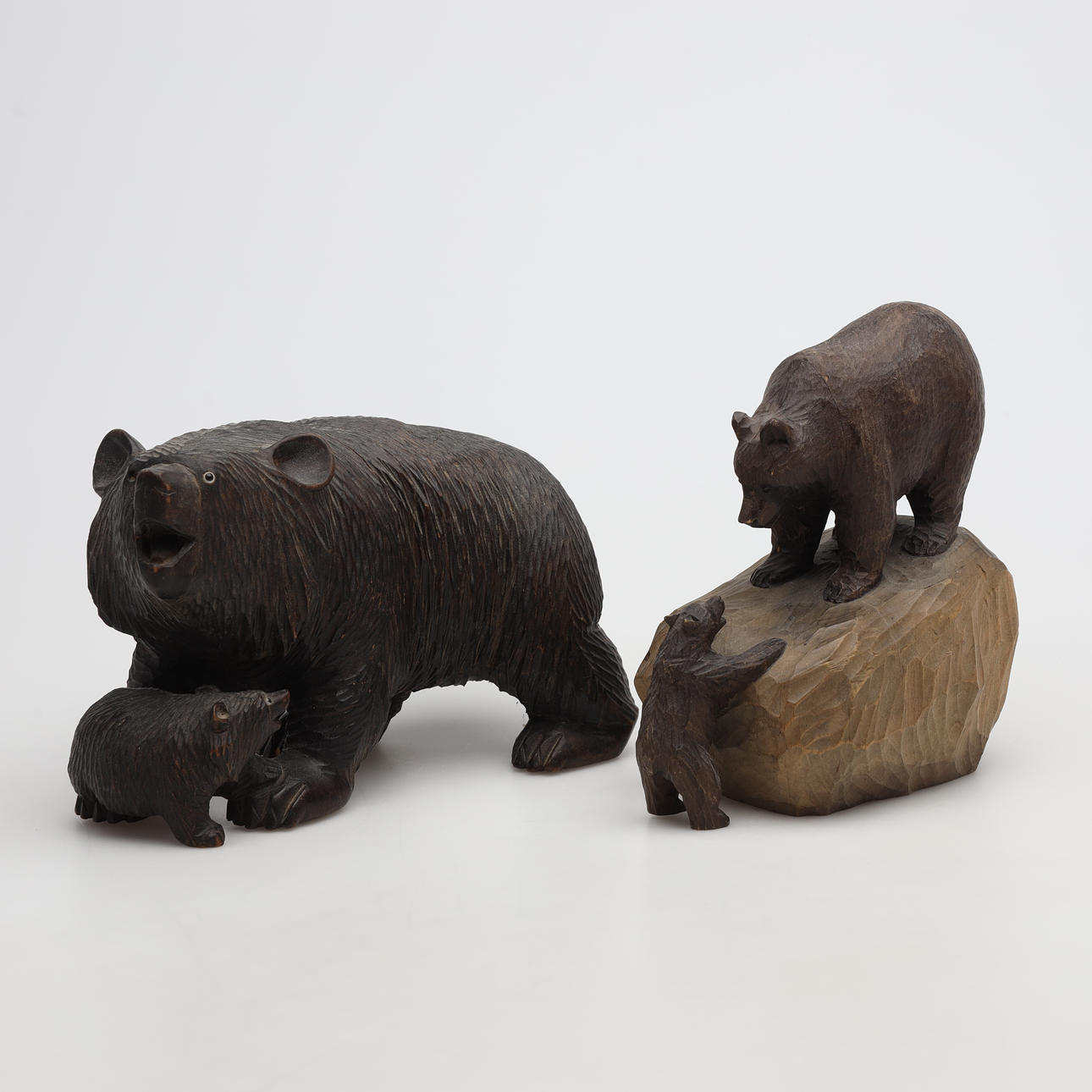 4511741. SCULPTURES, 6 pieces, bears, wood, partially signed.