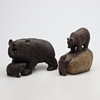 SCULPTURES, 6 pieces, bears, wood, partially signed.