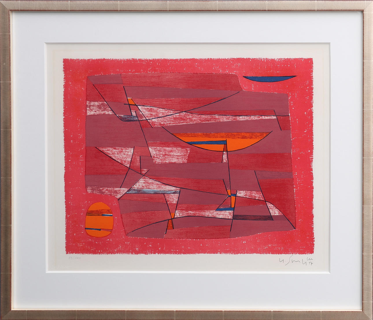 Signed, dated 57, numbered 509200, image surface 38x47 cm, frame dimensions 62,5x70 cm.