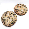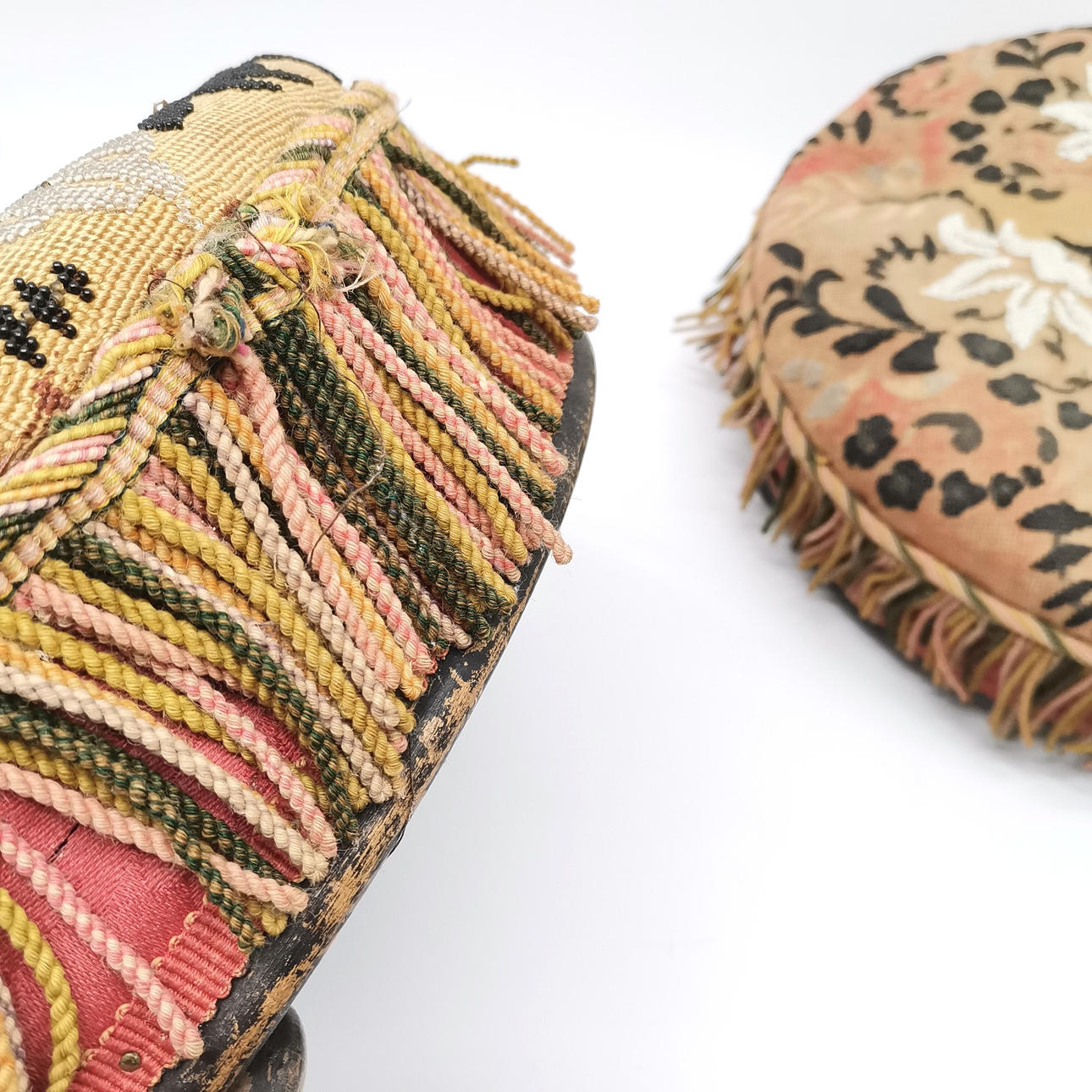 Pair of large circular beaded footstools with fringed edge 45cm diameter x 15cm high.