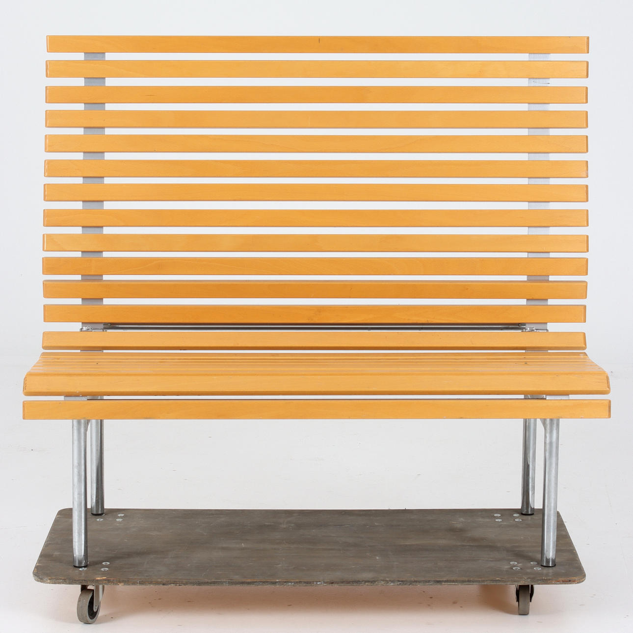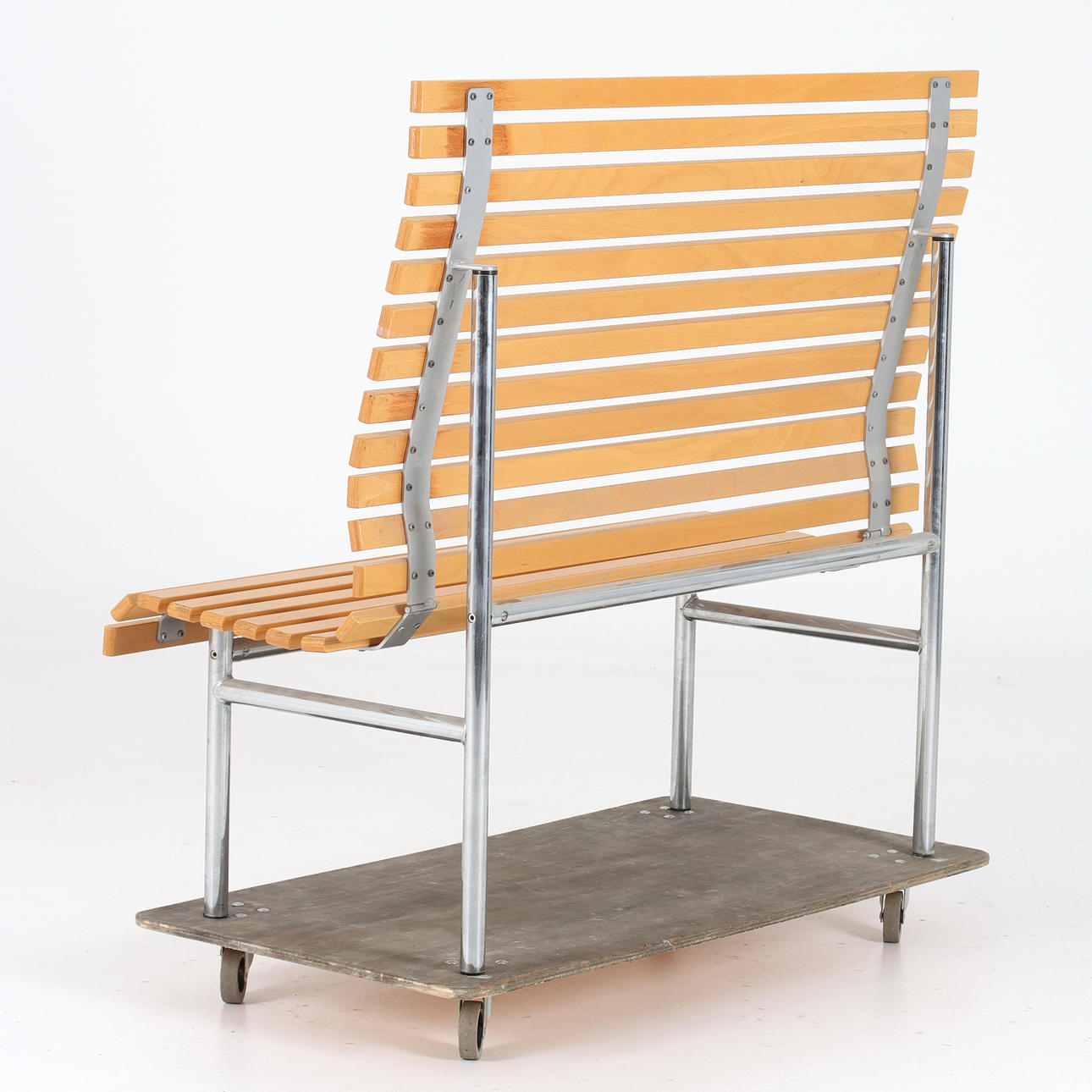 Chromed leg stand with beech ribs.