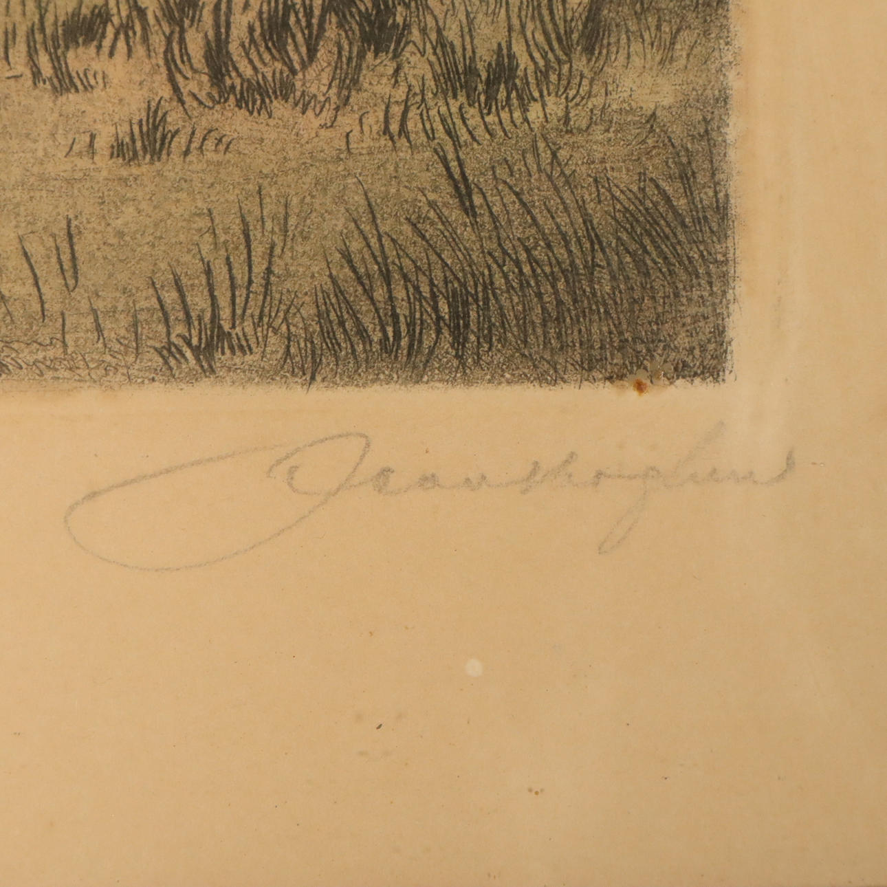 JEAN SKOGLUND. COLOUR ETCHING, “Ryggåsstugan” signed.