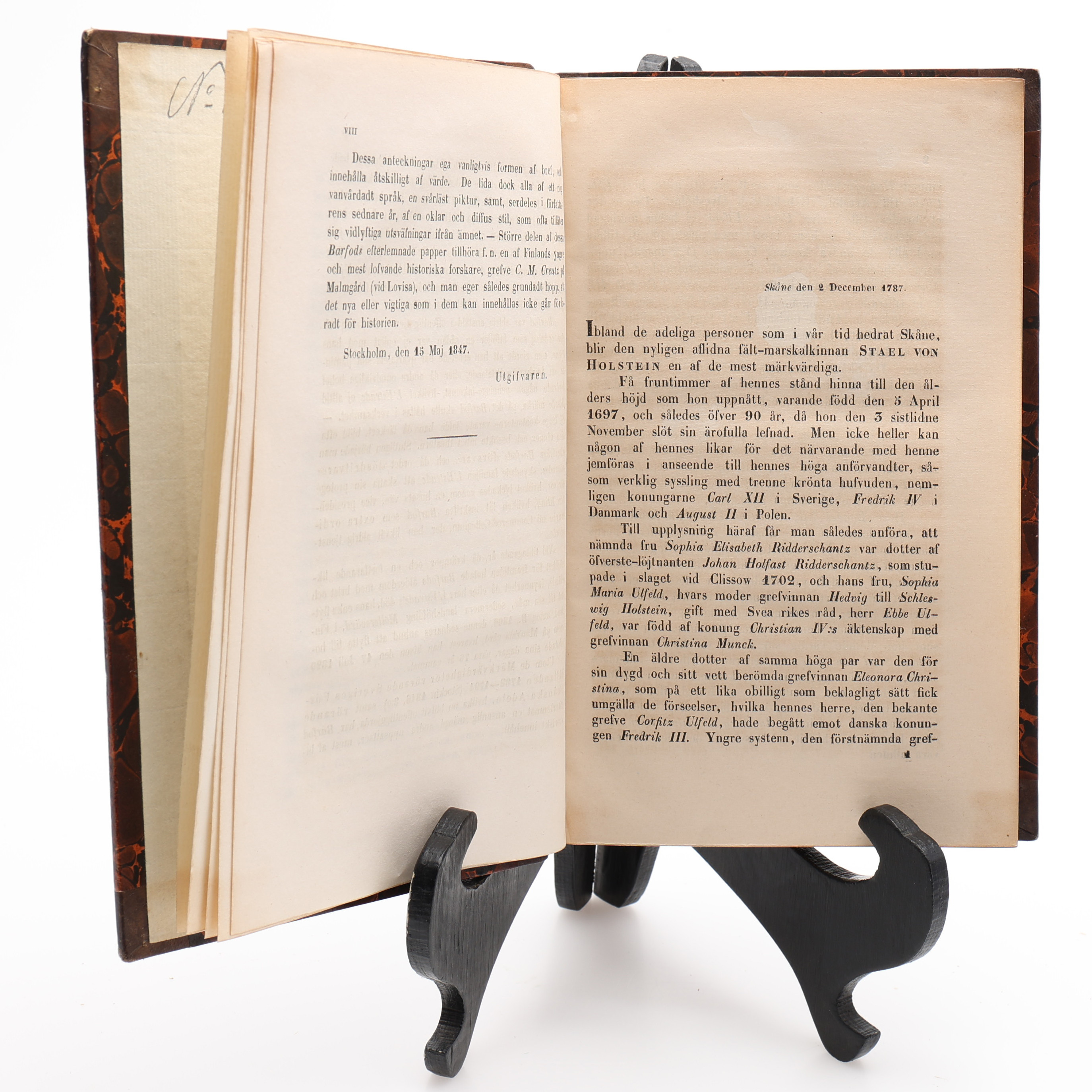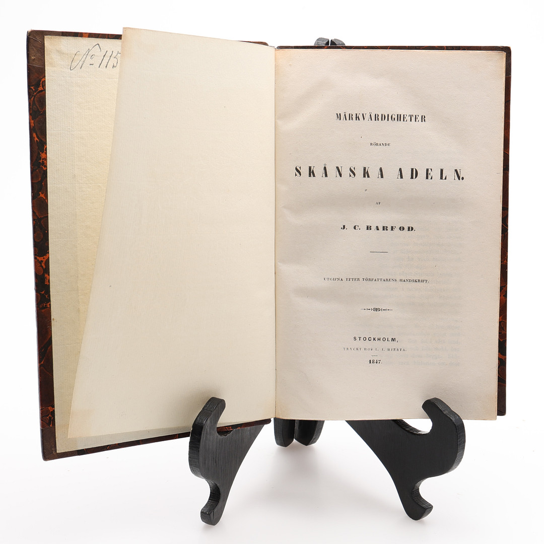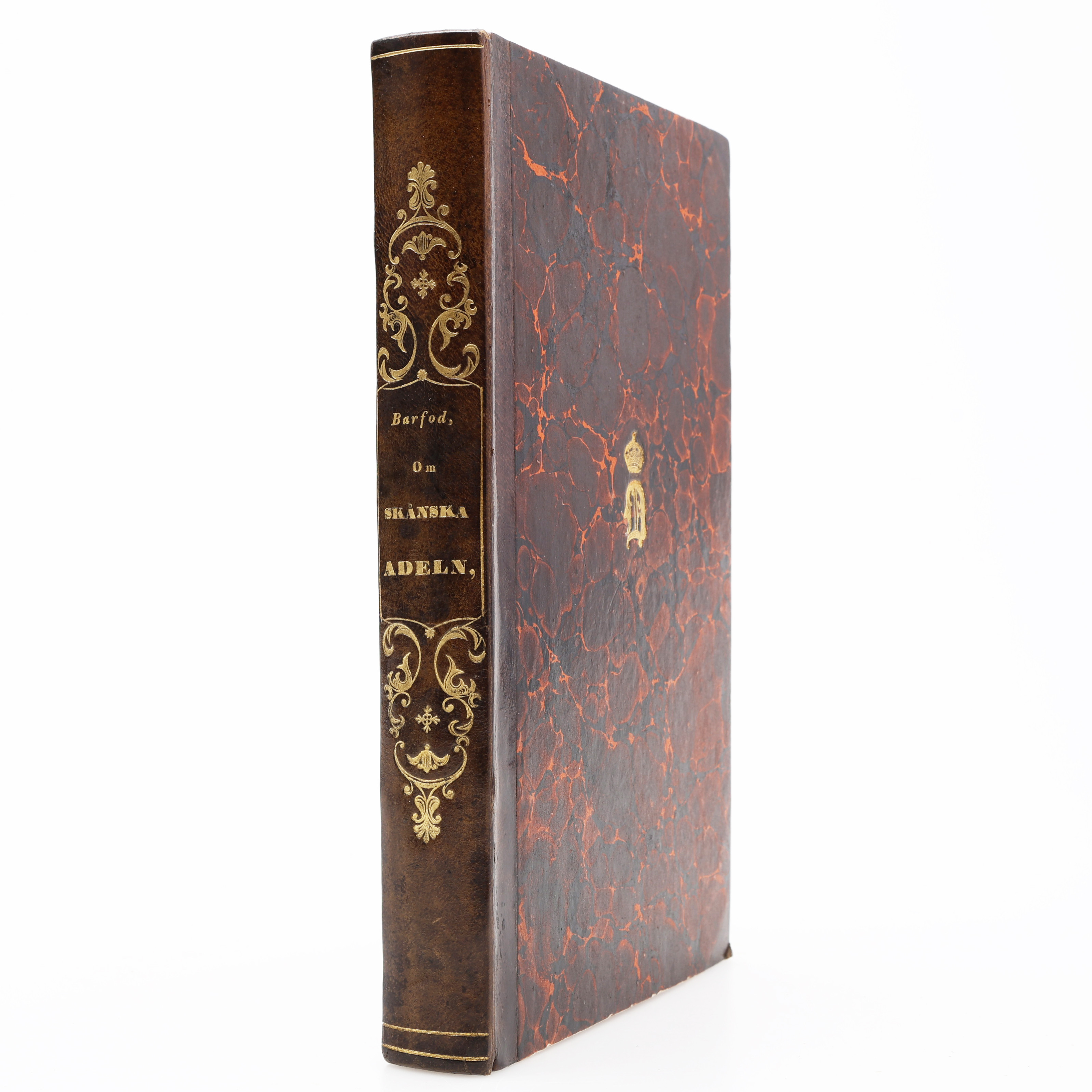 4520610. JOHAN CHRISTOPHER BAREFOOT'S CURIOSITIES ABOUT THE SCANIAN NOBILITY 1847 WITH OSCAR II'S BINDER LIBRARY.