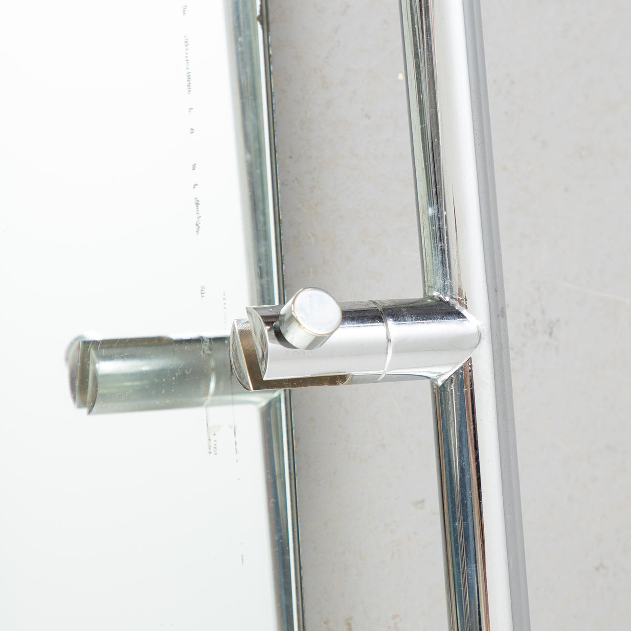 Mirror glass with chrome-plated steel tube. Adjustable lamp head.