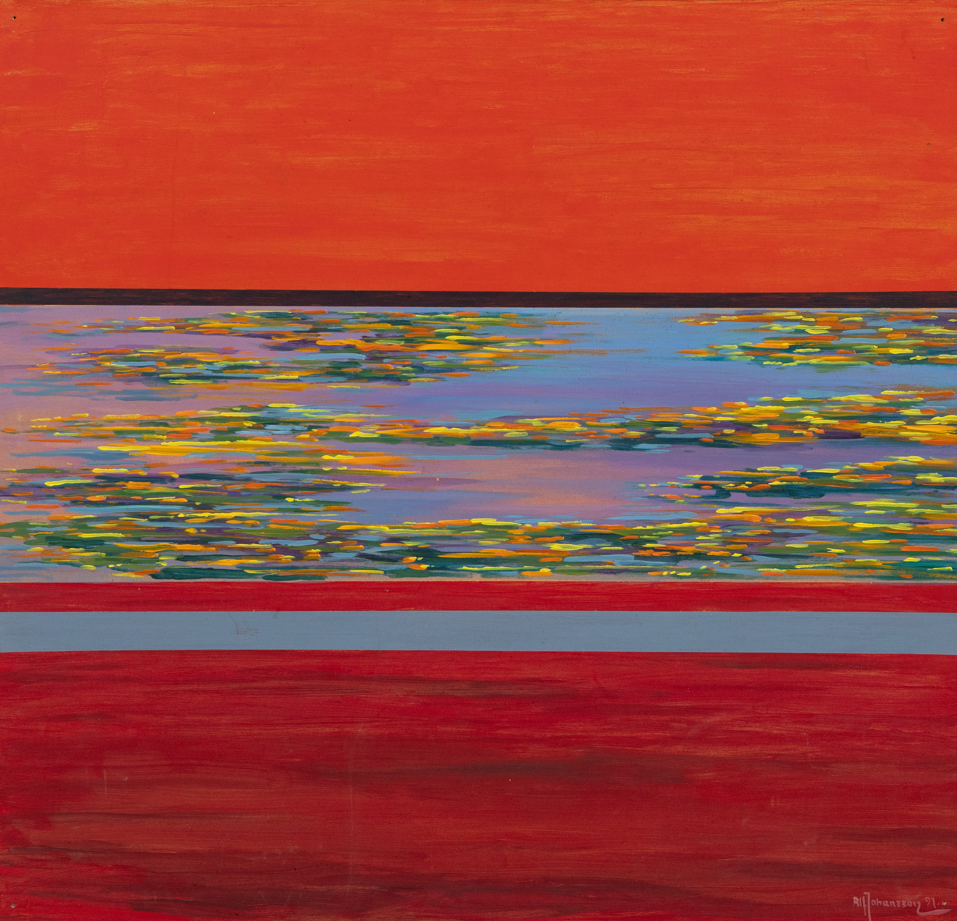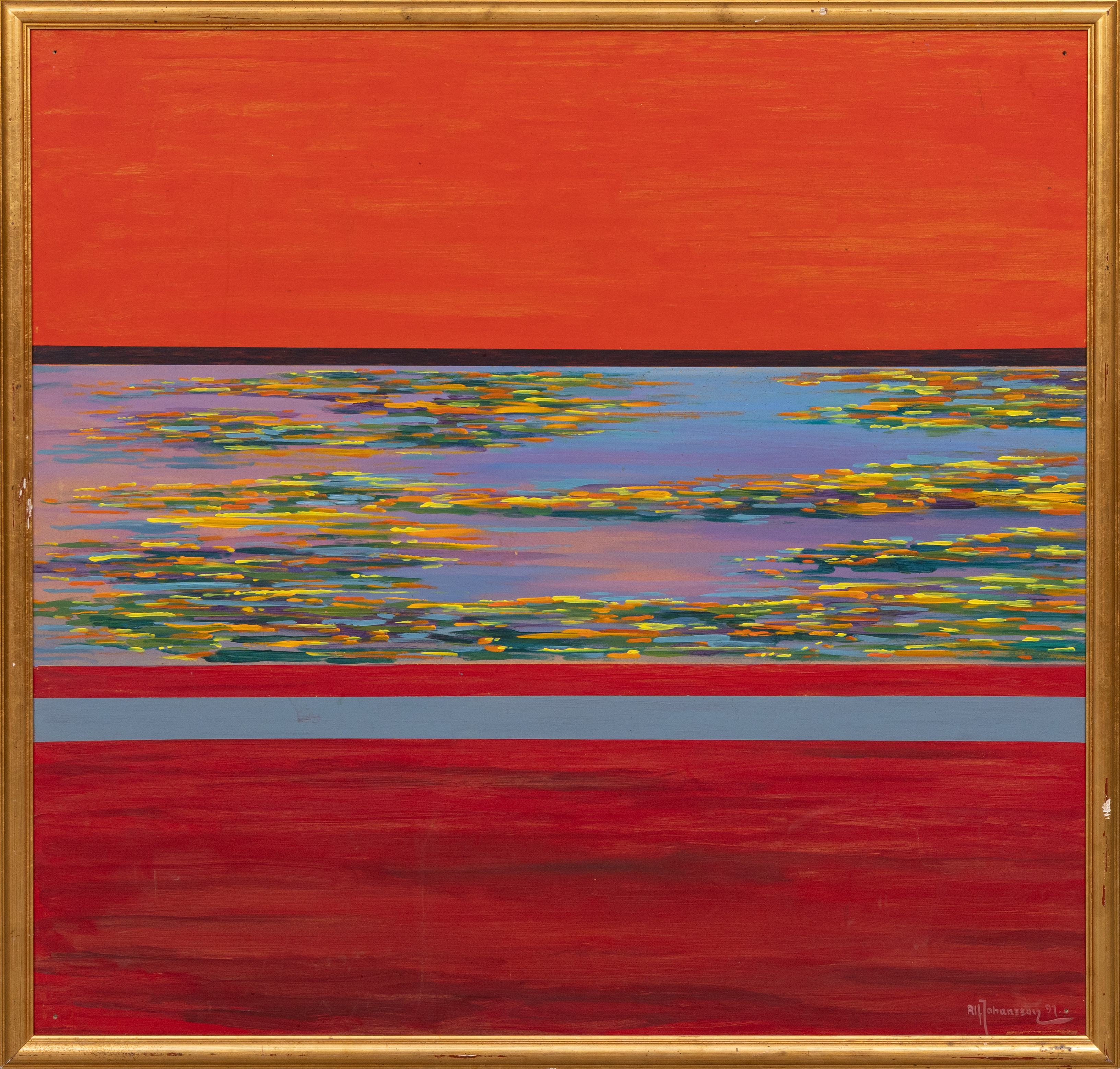 4521336. ALF JOHANSSON. Abstract motif, oil on masonite, signed and dated -91.