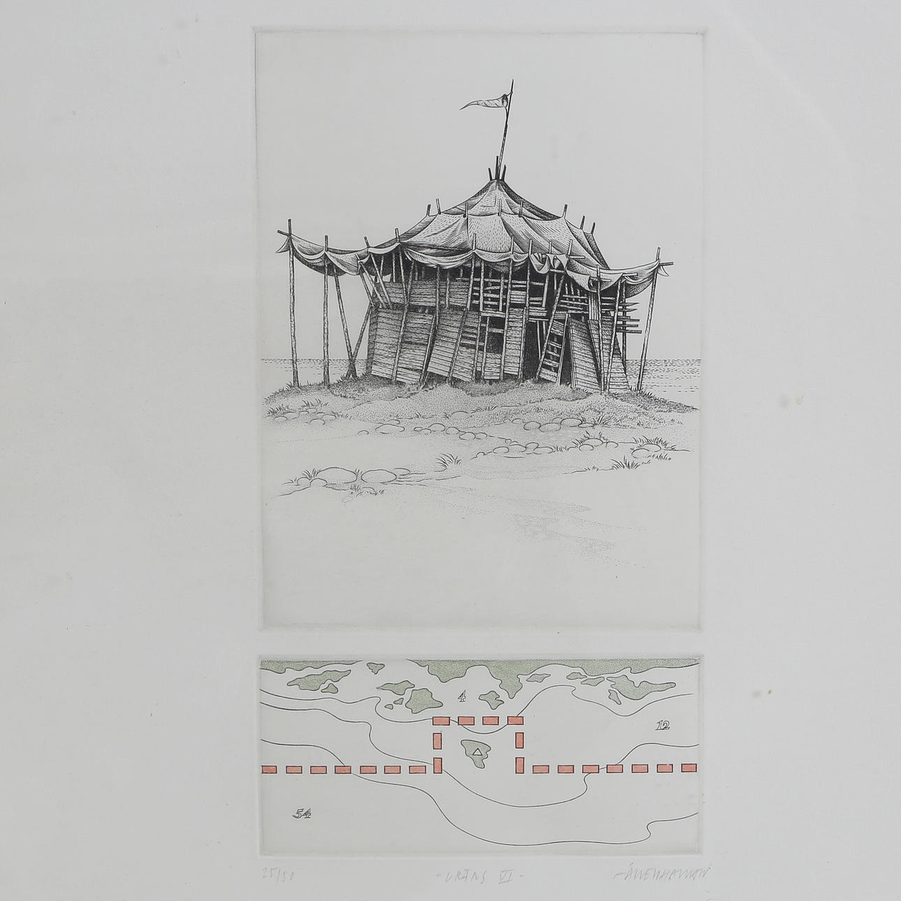 ÅKE JOHANSSON “BORDER VI” ETCHING, 25/50, SIGNED.
