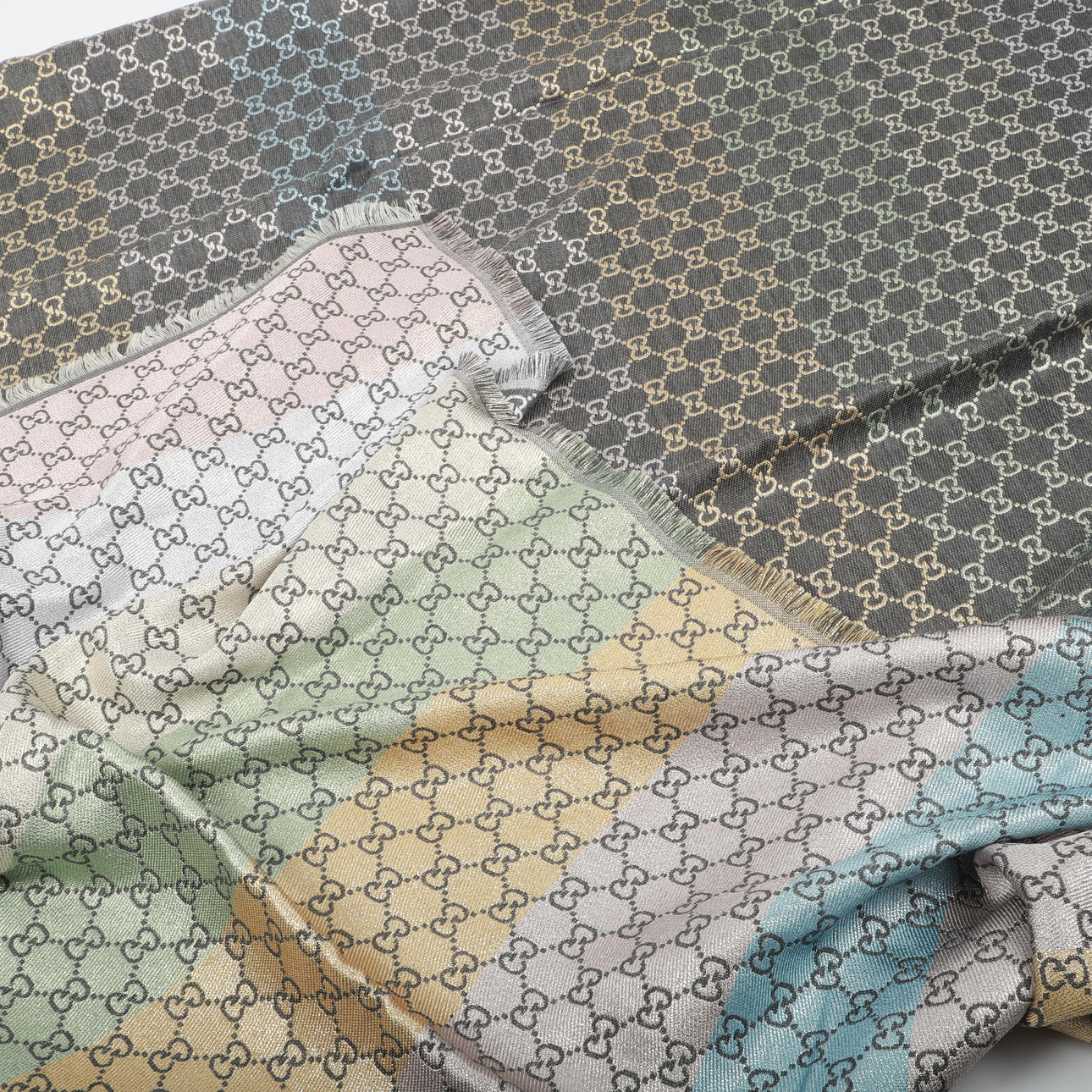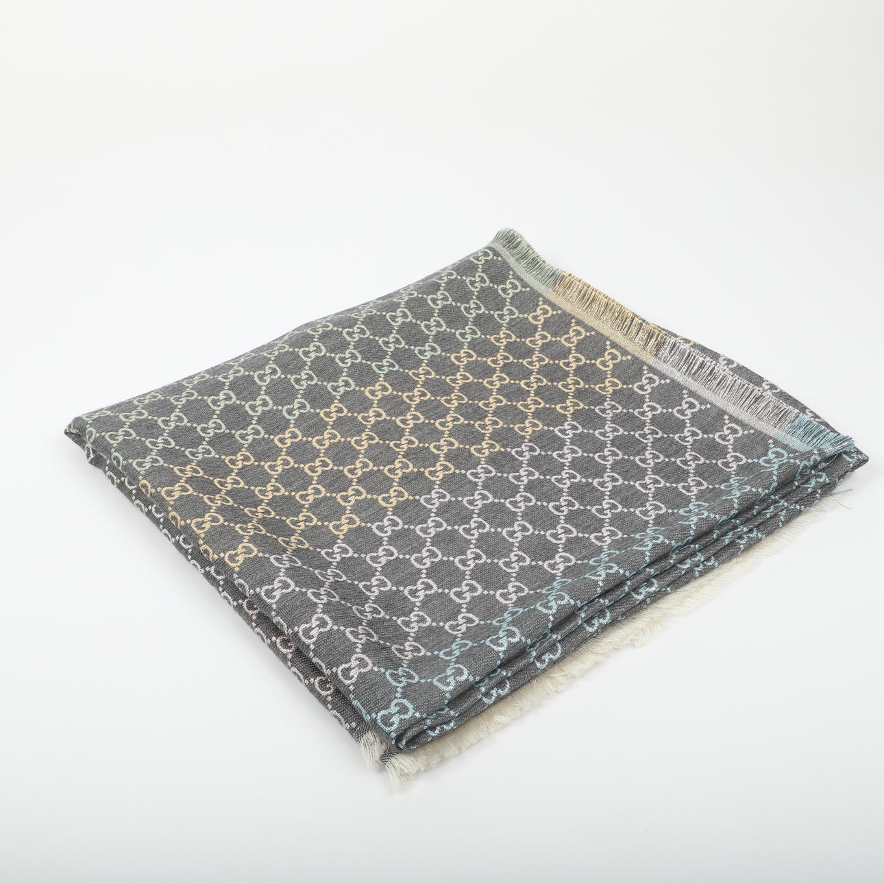 4522363. Shawl, gray with multicolored print, Gucci, Italy.