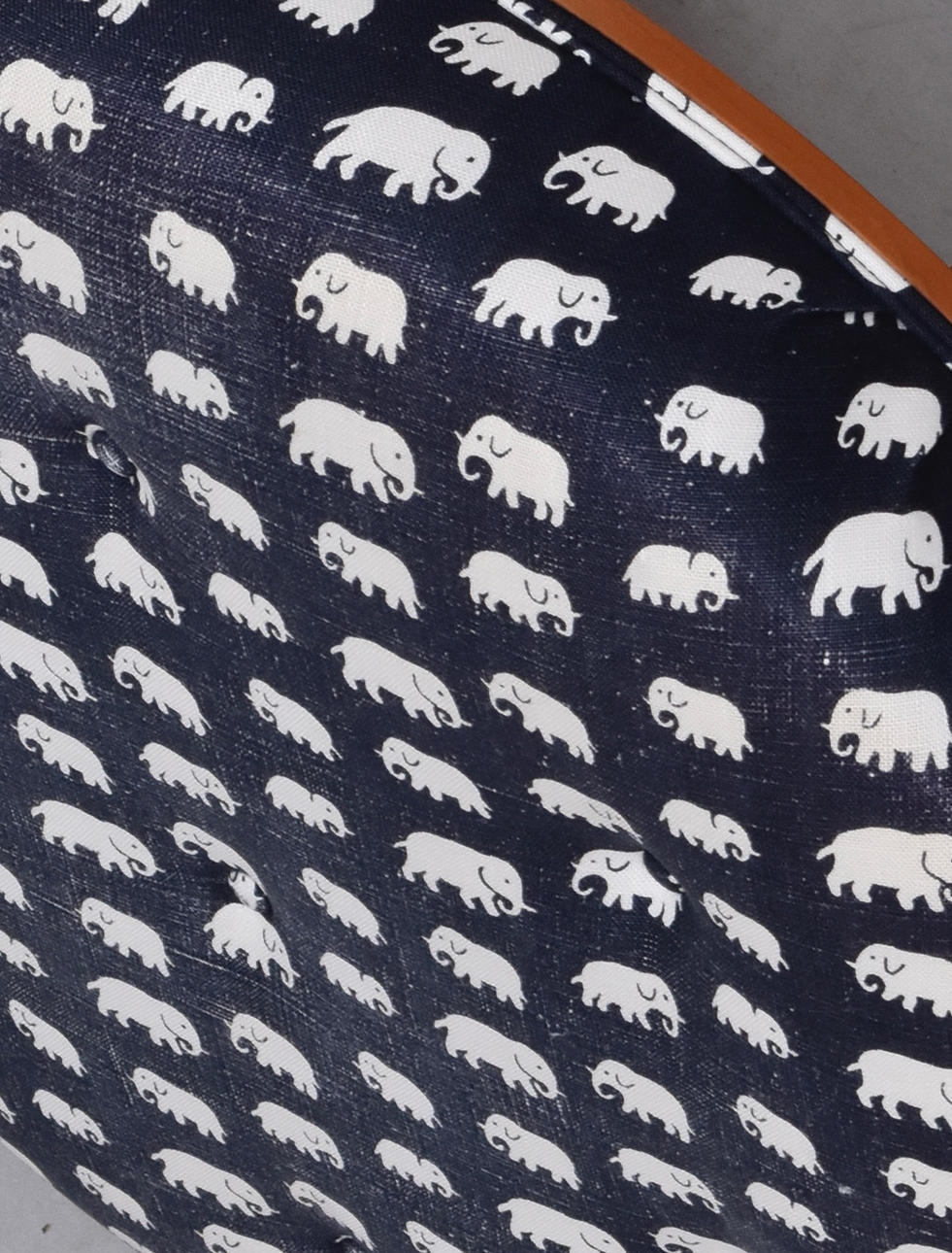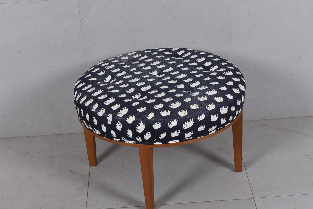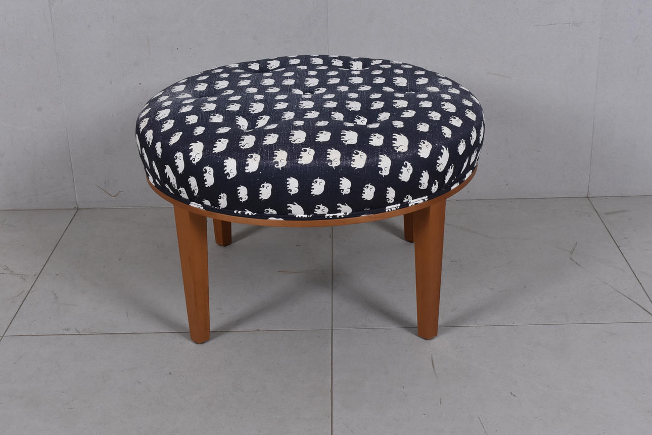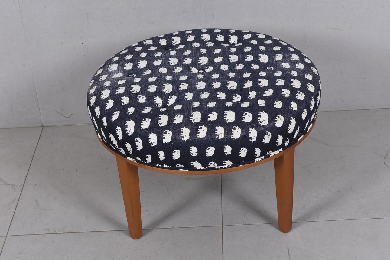 model number 647, design 1936, upholstery in “Elefant”, design Estrid Ericson 1930s, h 40 cm, dia 62 cm.