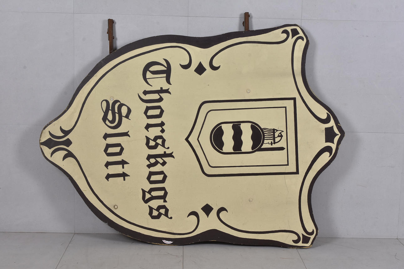 SIGN, PAINTED CHIPBOARD AND FORGING, “THORSKOG'S CASTLE”.