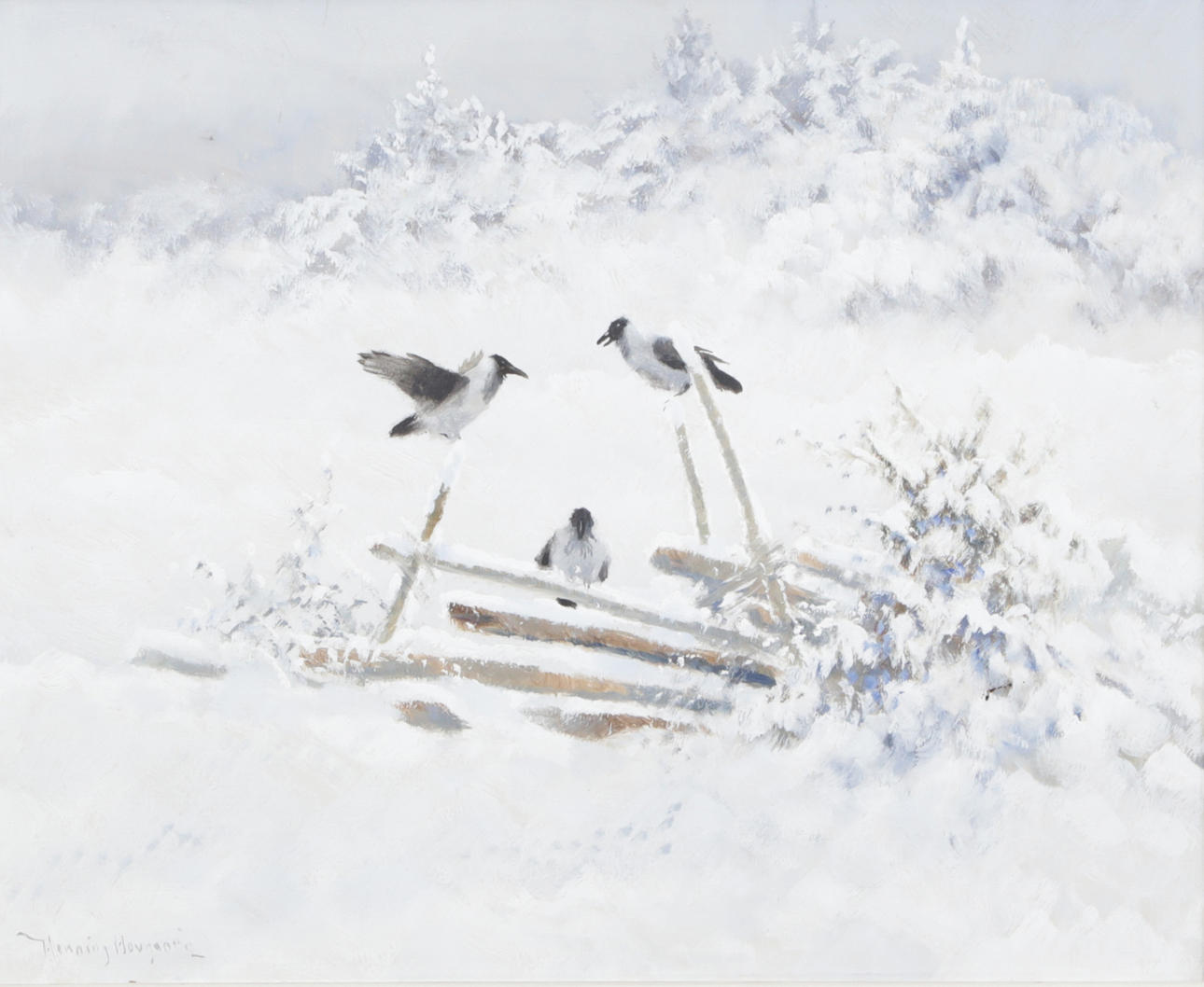 4525527. HENNING HOUGAARD. OIL, on panel, bird motif, signed.
