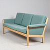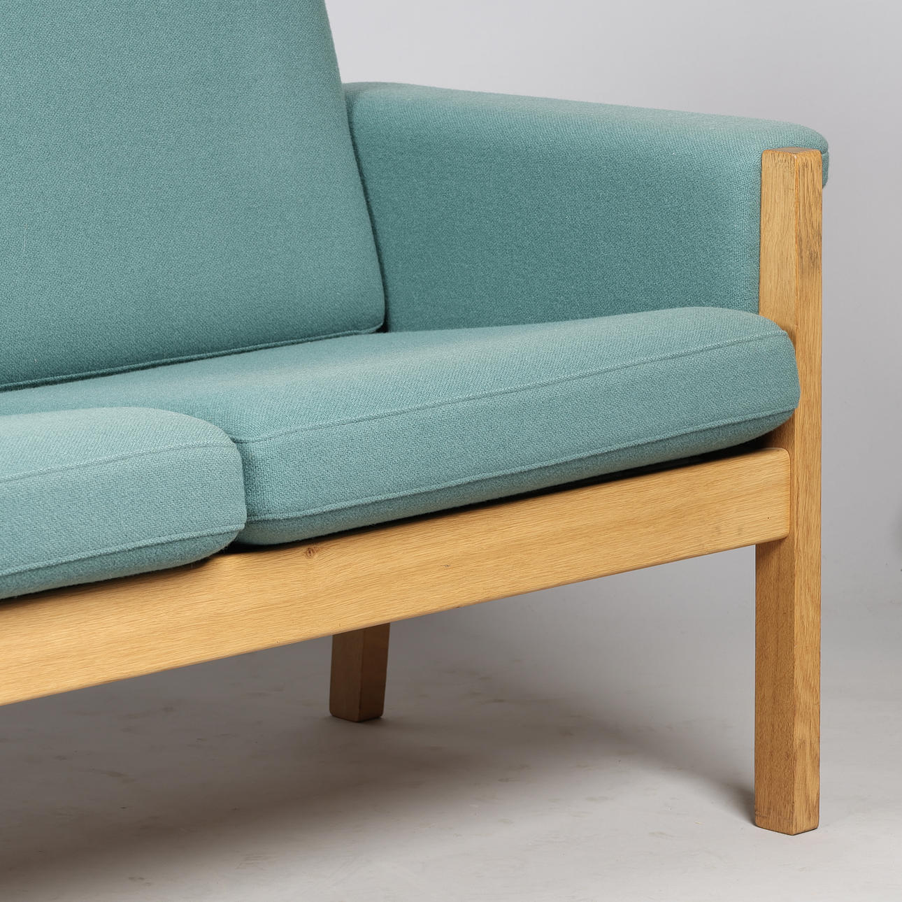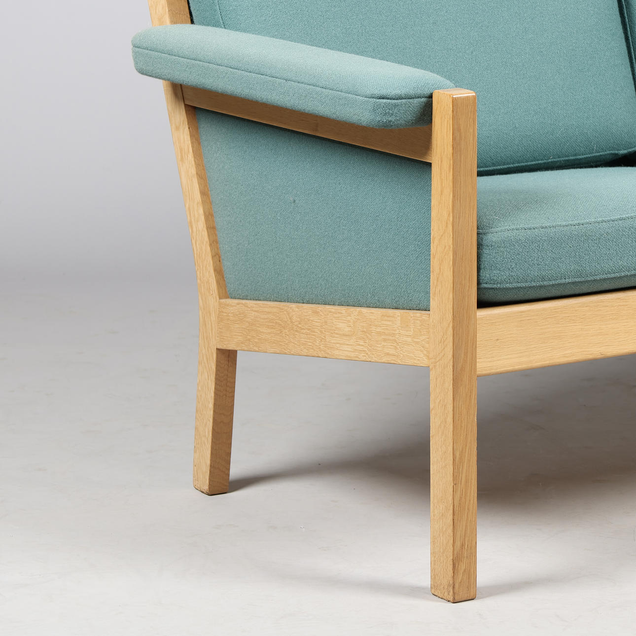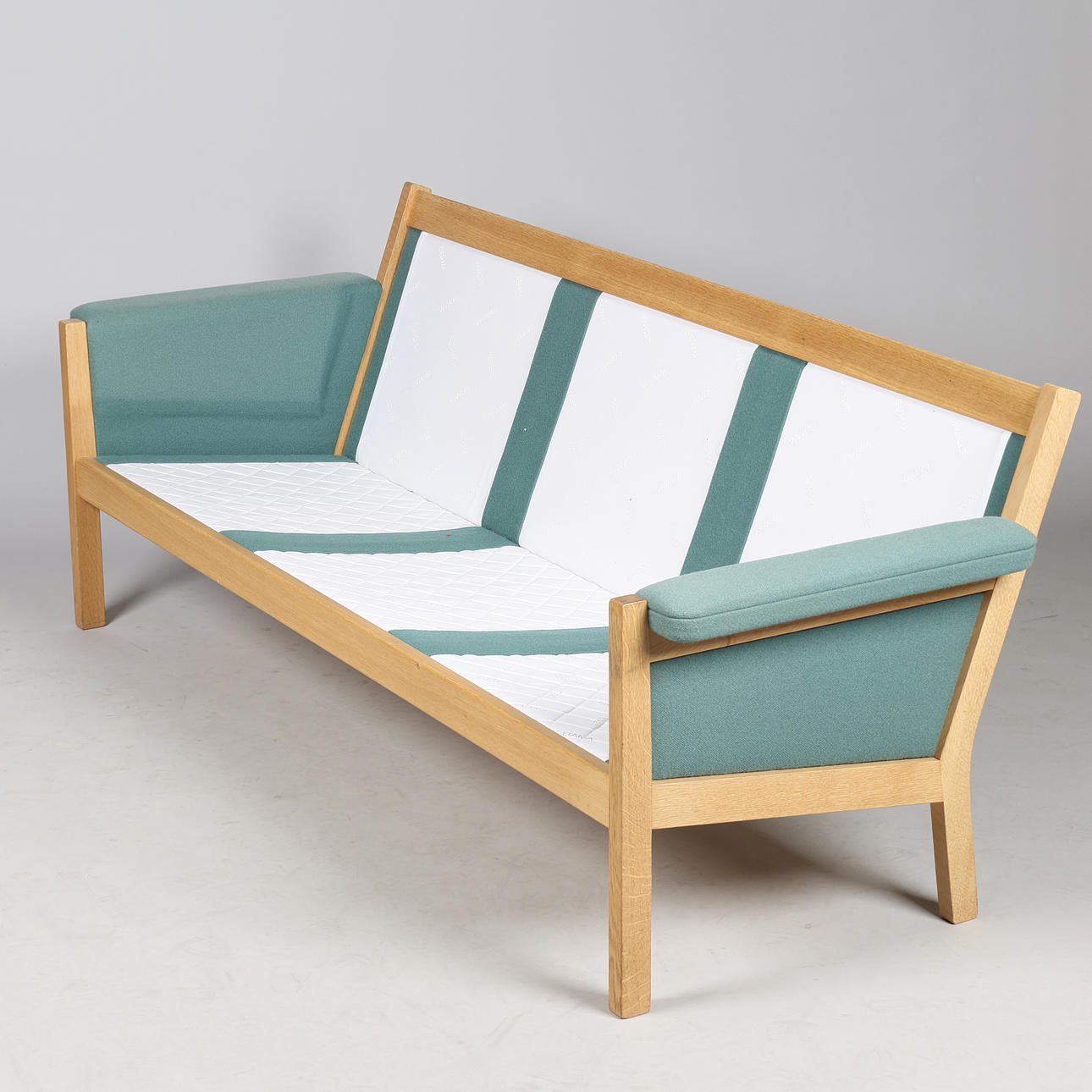 4526011. HANS J WEGNER. “GE40" three-seater sofa in solid oak and green wool, Getama, Denmark.