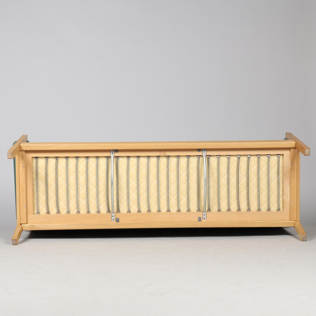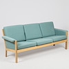HANS J WEGNER. “GE40" three-seater sofa in solid oak and green wool, Getama, Denmark.