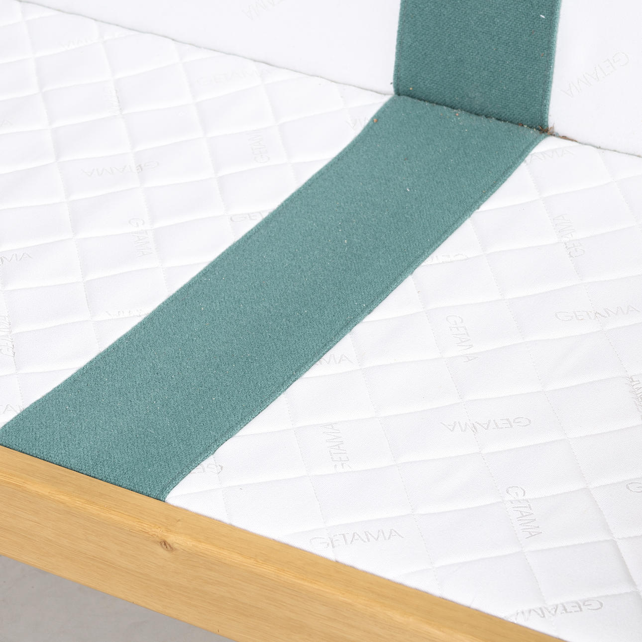 Three-seater sofa Model “GE40" with solid oak frame and loose cushions upholstered in green wool. Made at Getama, Denmark. The brand “Getama Gedsted Design Hans J. Wegner” on the frame.