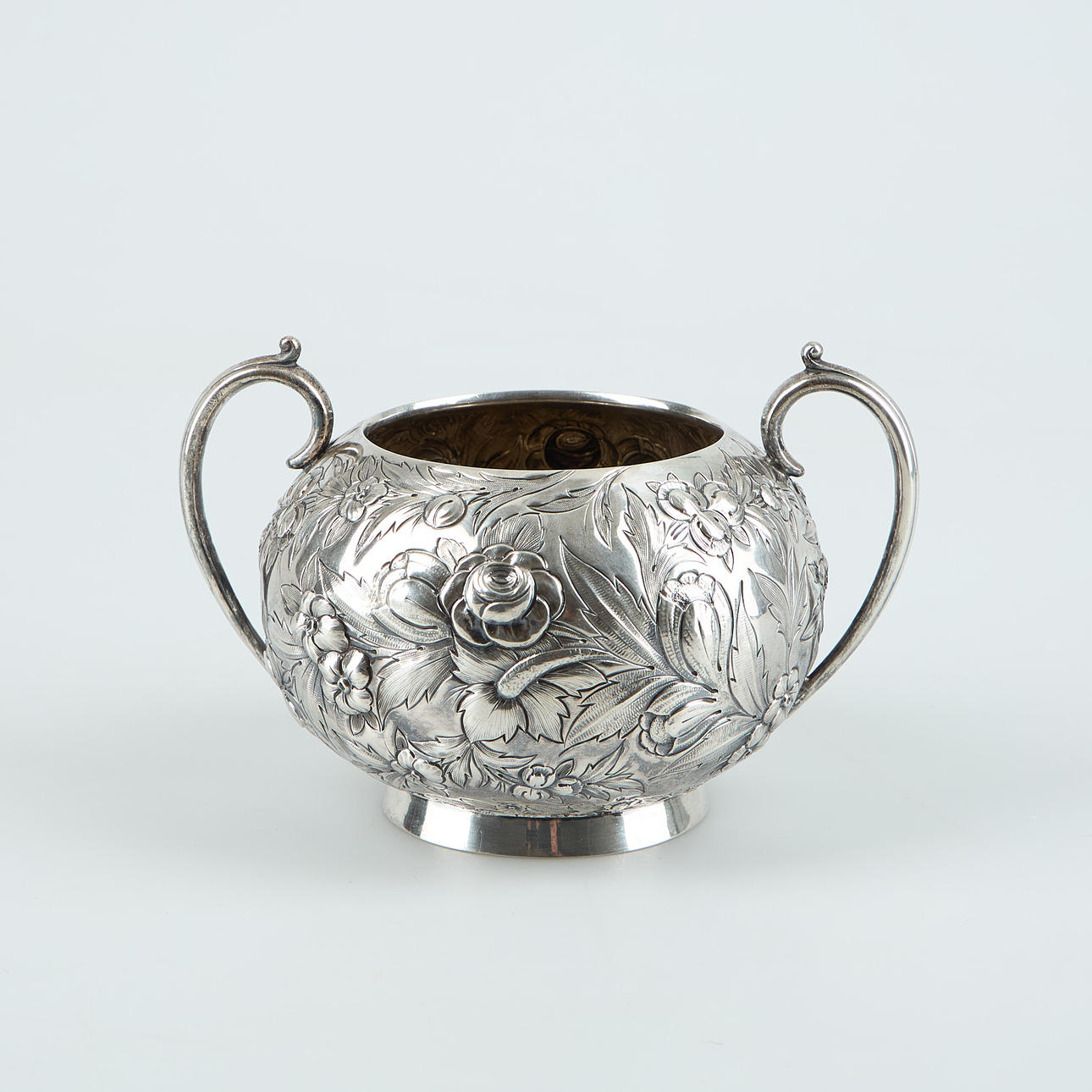 The sugar bowl lacks a lid. Age-related wear and tear.
