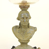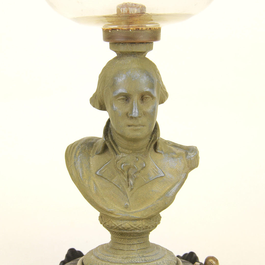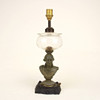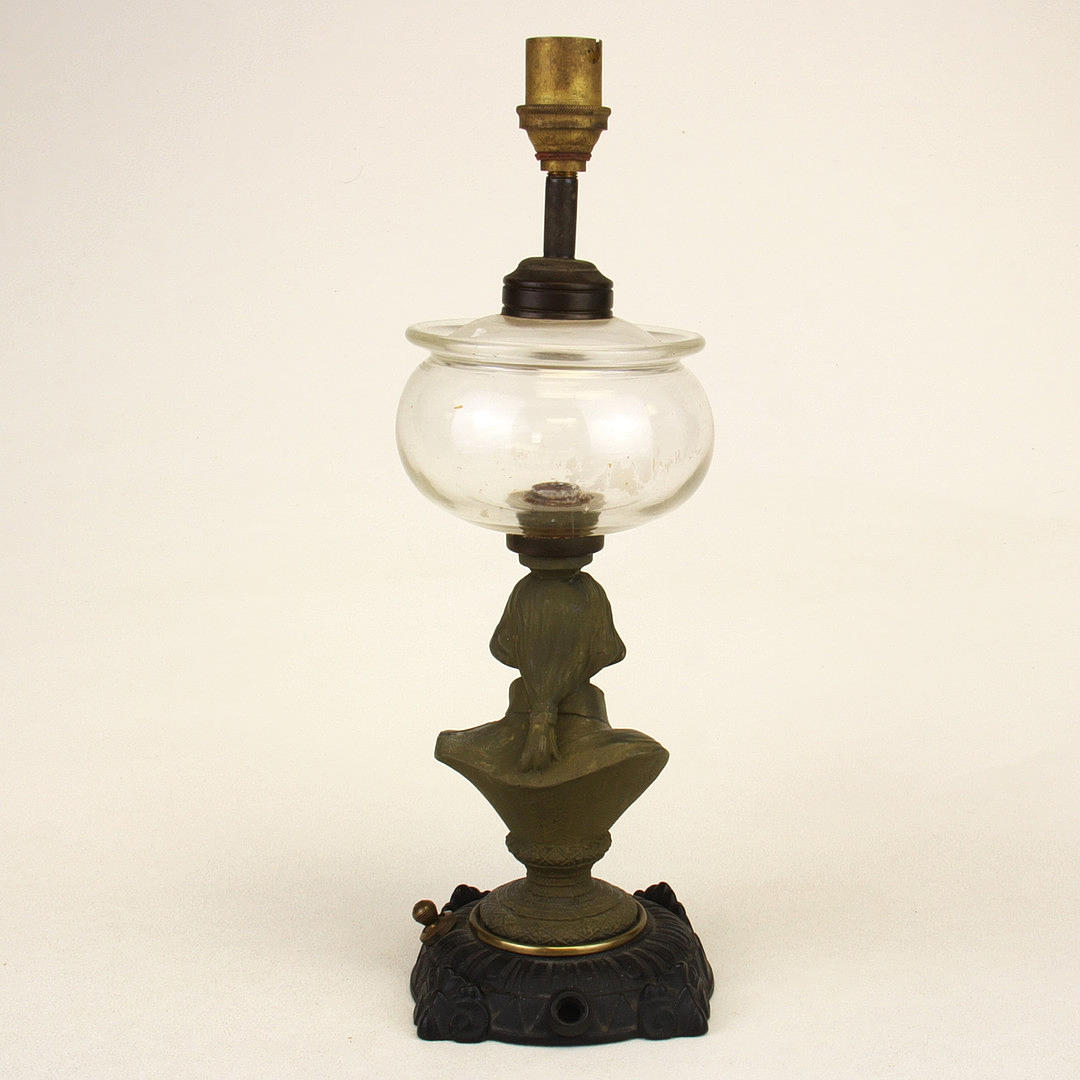 A 19th-century American cast metal oil lamp converted as an electric lamp, H. 31cm.