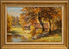 Komposiiton with house by stream in forest