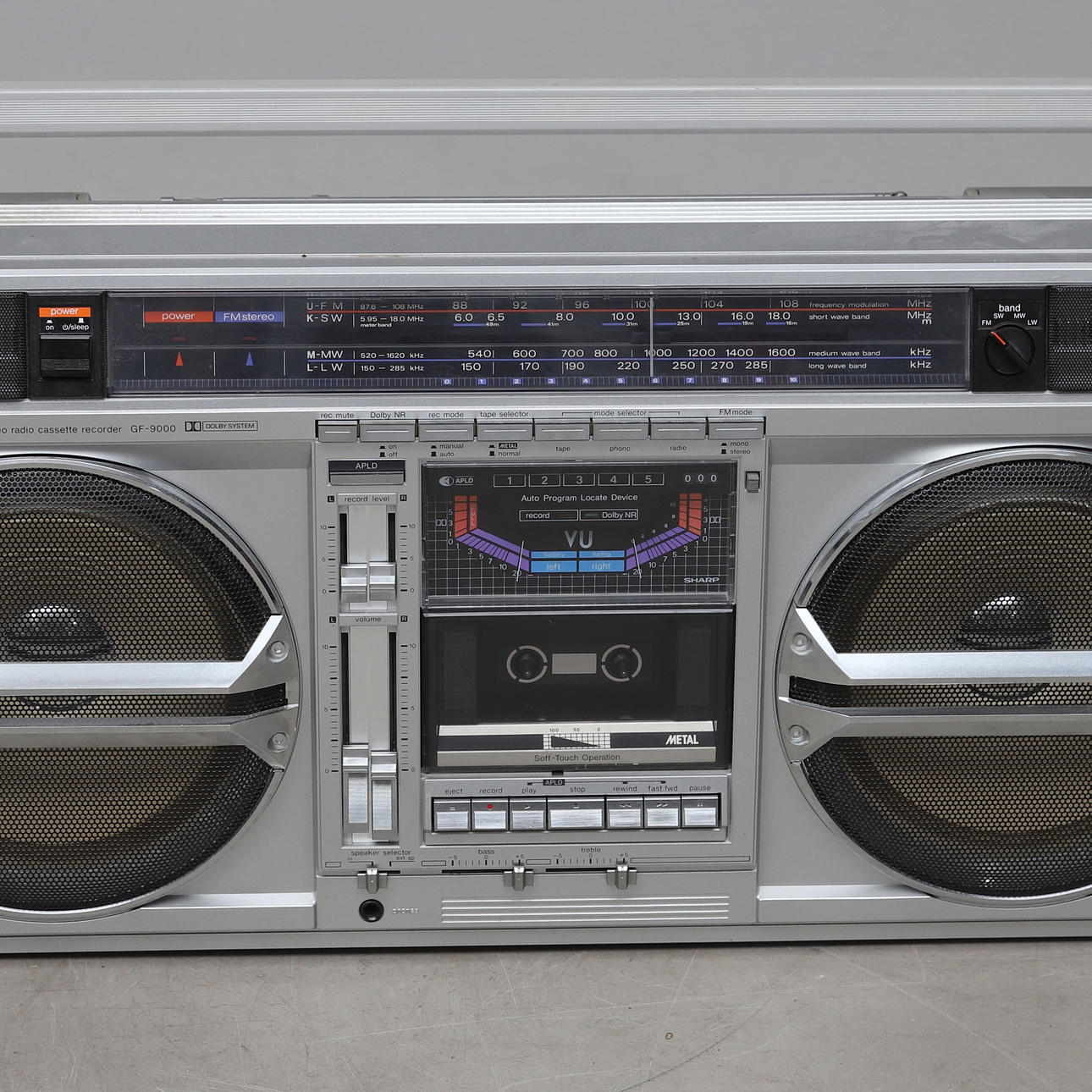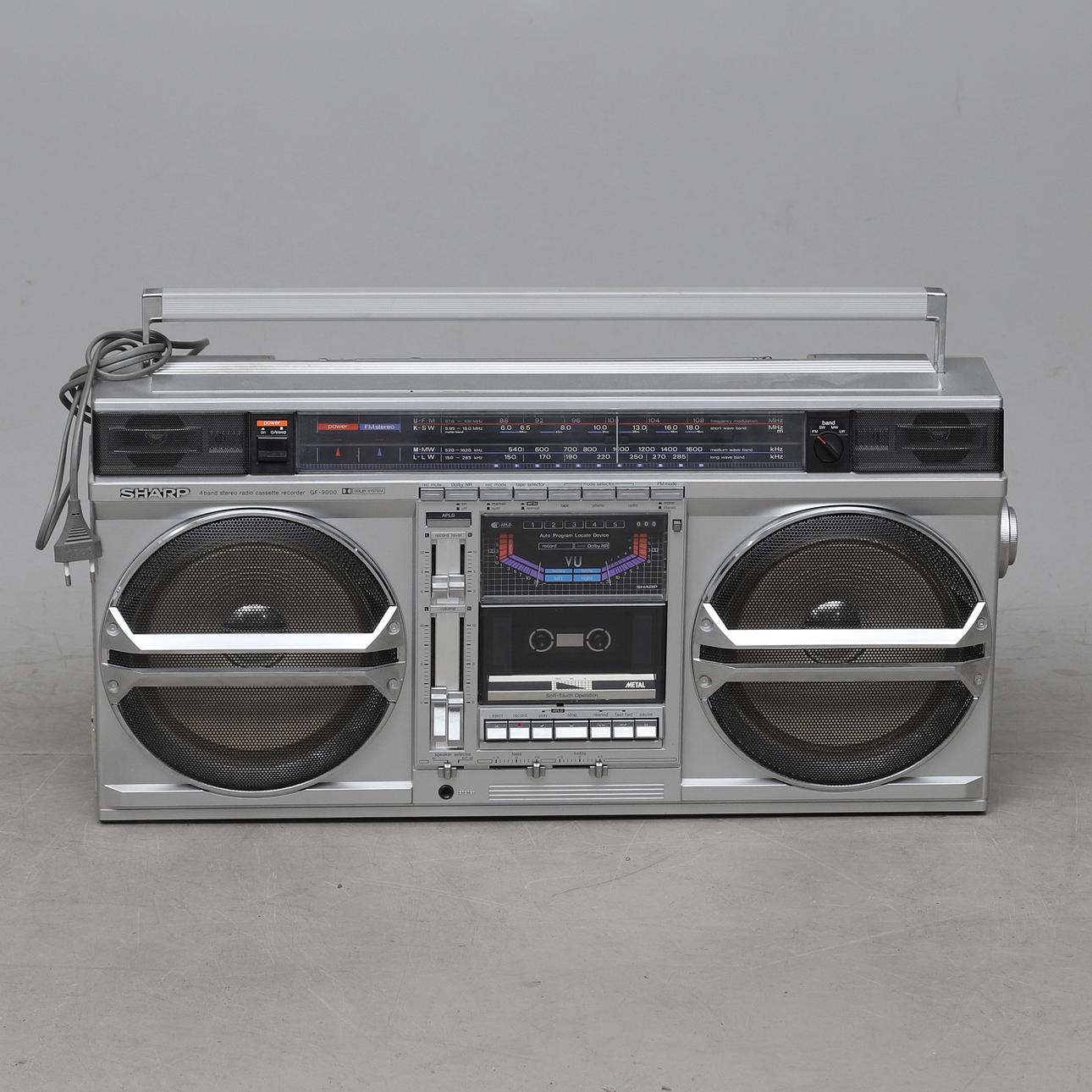With radio and cassette recorder. Length ca 67, width 17, height 32 cm.