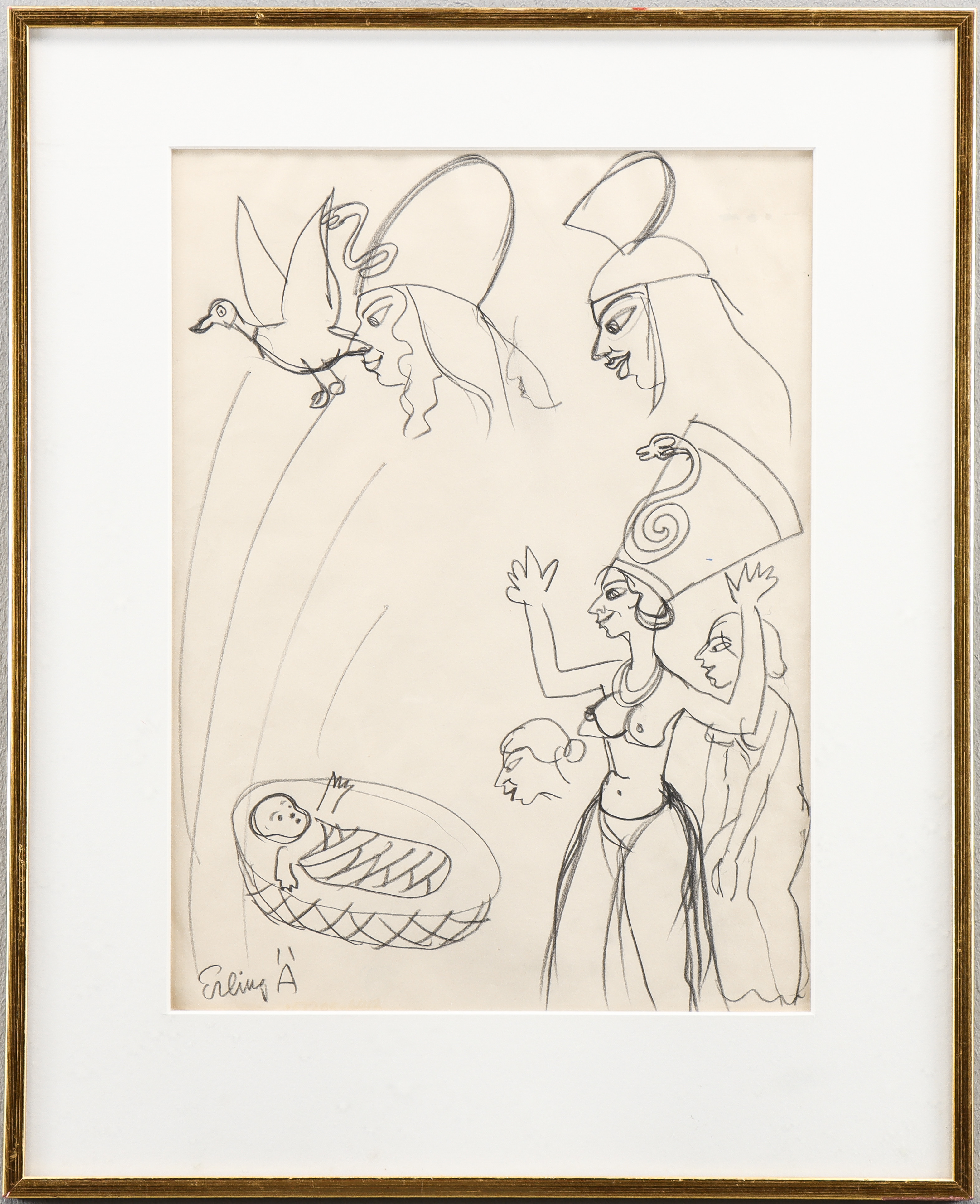 4530305. ERLING ÄRLINGSSON. Pencil drawing, signed.