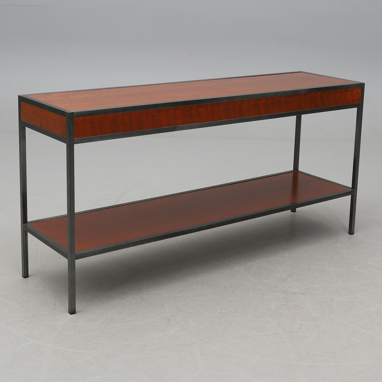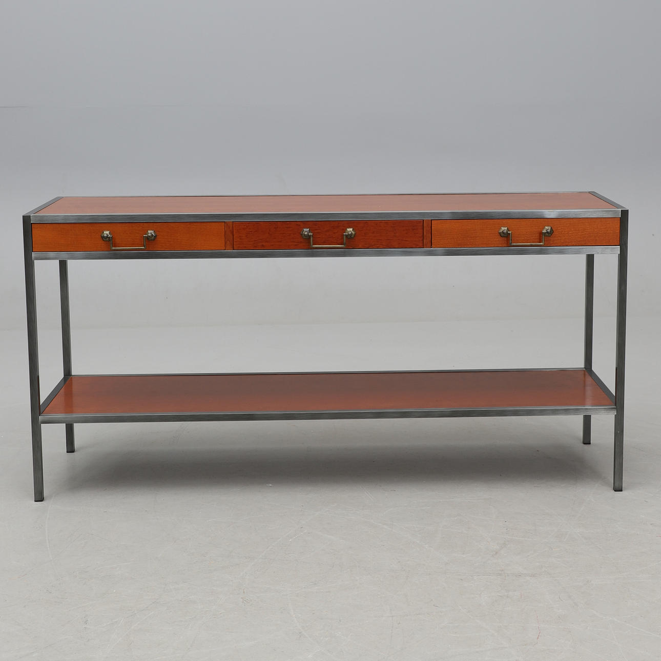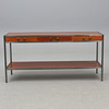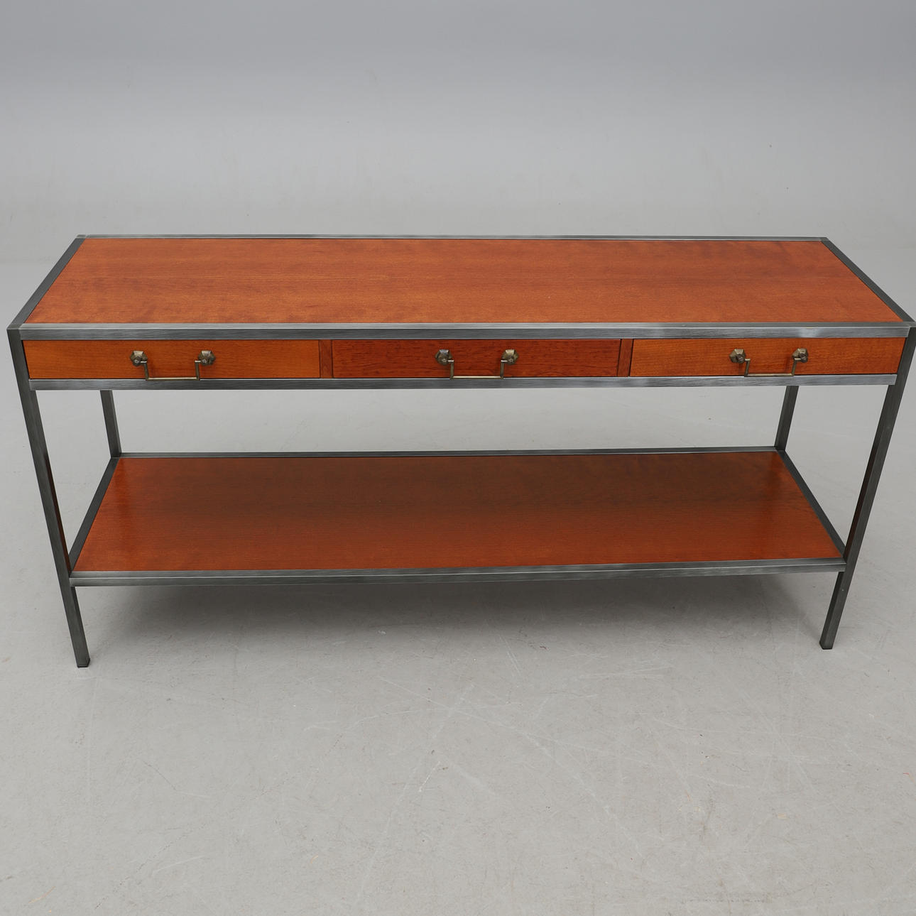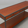 Metal frame, cherry-colored wood. Three boxes. Length 145, depth 41, height 70 cm.