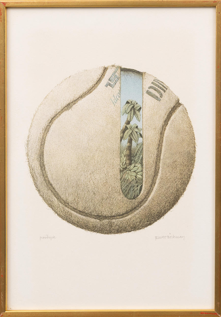 BENGT BÖCKMAN. Tennis ball, lithograph, sample print, signed.