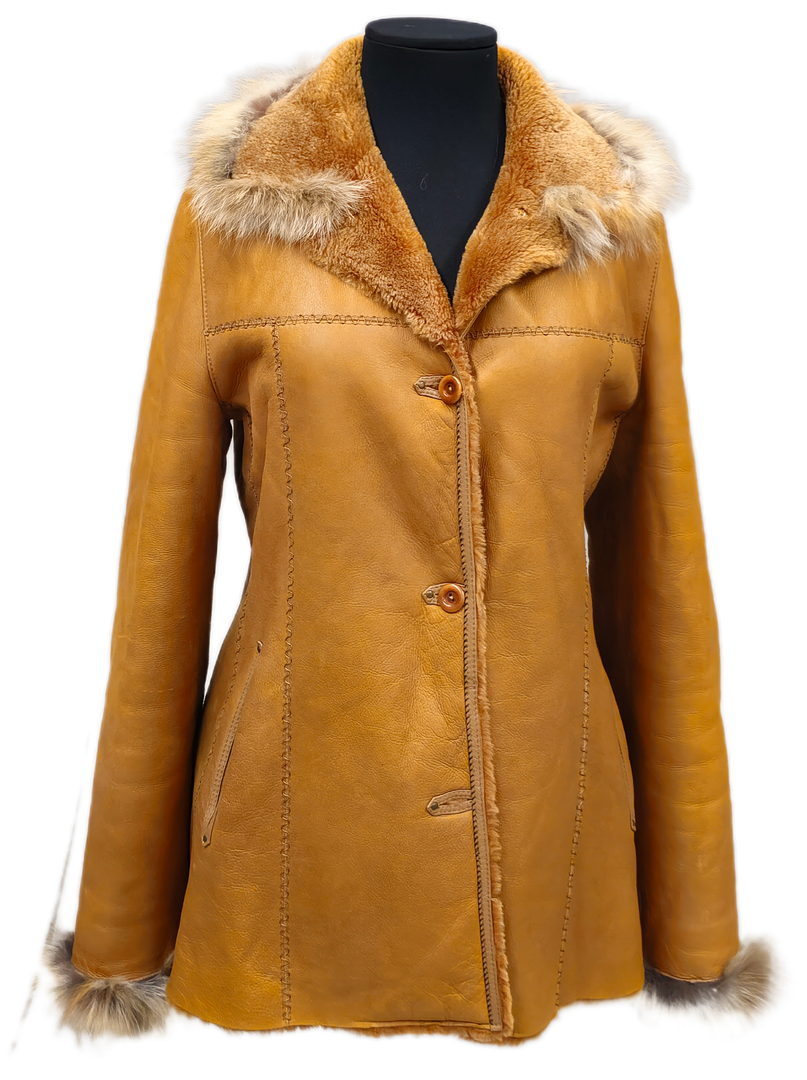 4533633. DRAPED LAMB JACKET. RIBBED COLLAR AND CUFF IN FOX. TURTLE STITCHING.