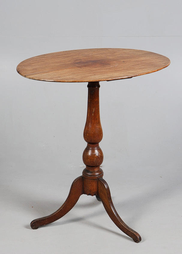 The mahogany tripod with oval top, measuring 76cm height, 69cm width, 52cm depth.