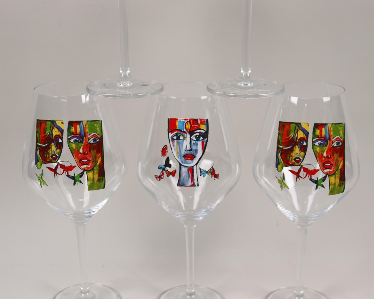 3 red wine glasses, height 22cm.