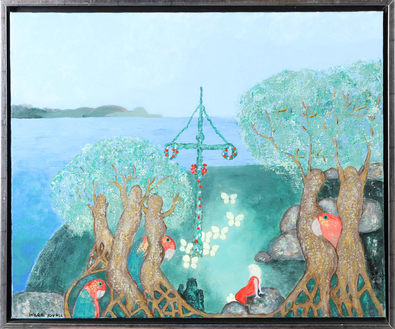 INGRID IDVALL. Midsummer, oil on canvas, signed.