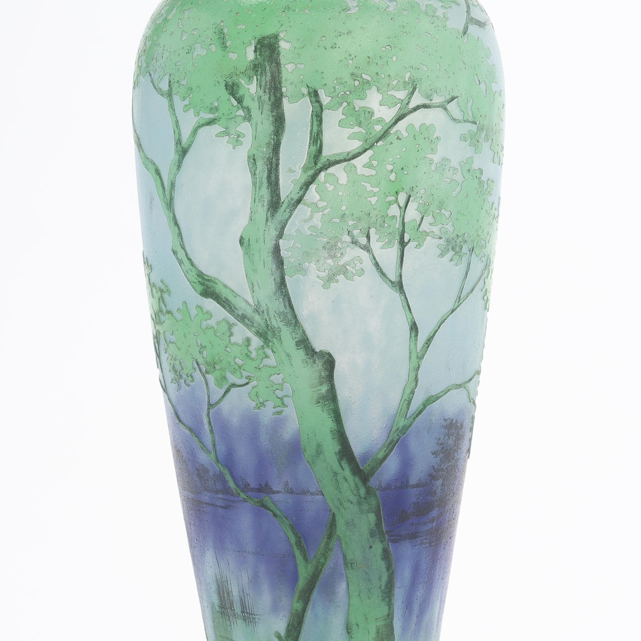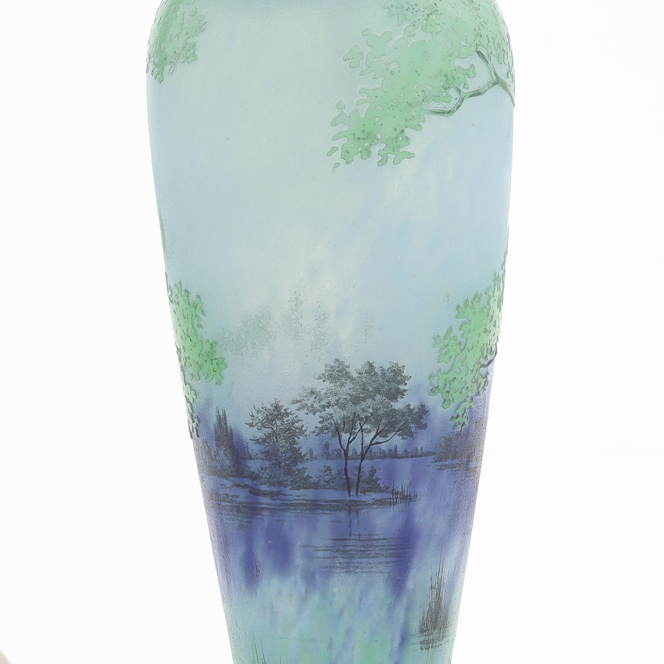 DAUM FRERES, NANCY, TABLE LAMP BASE, OVERHANG GLASS.