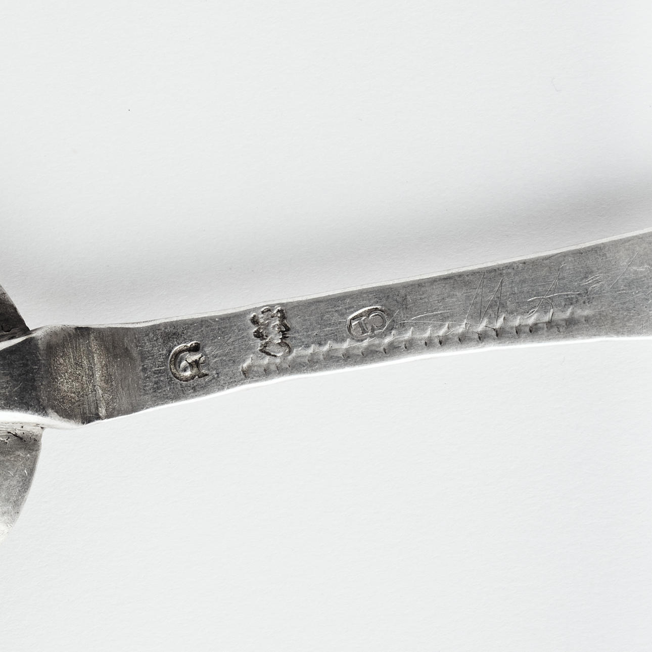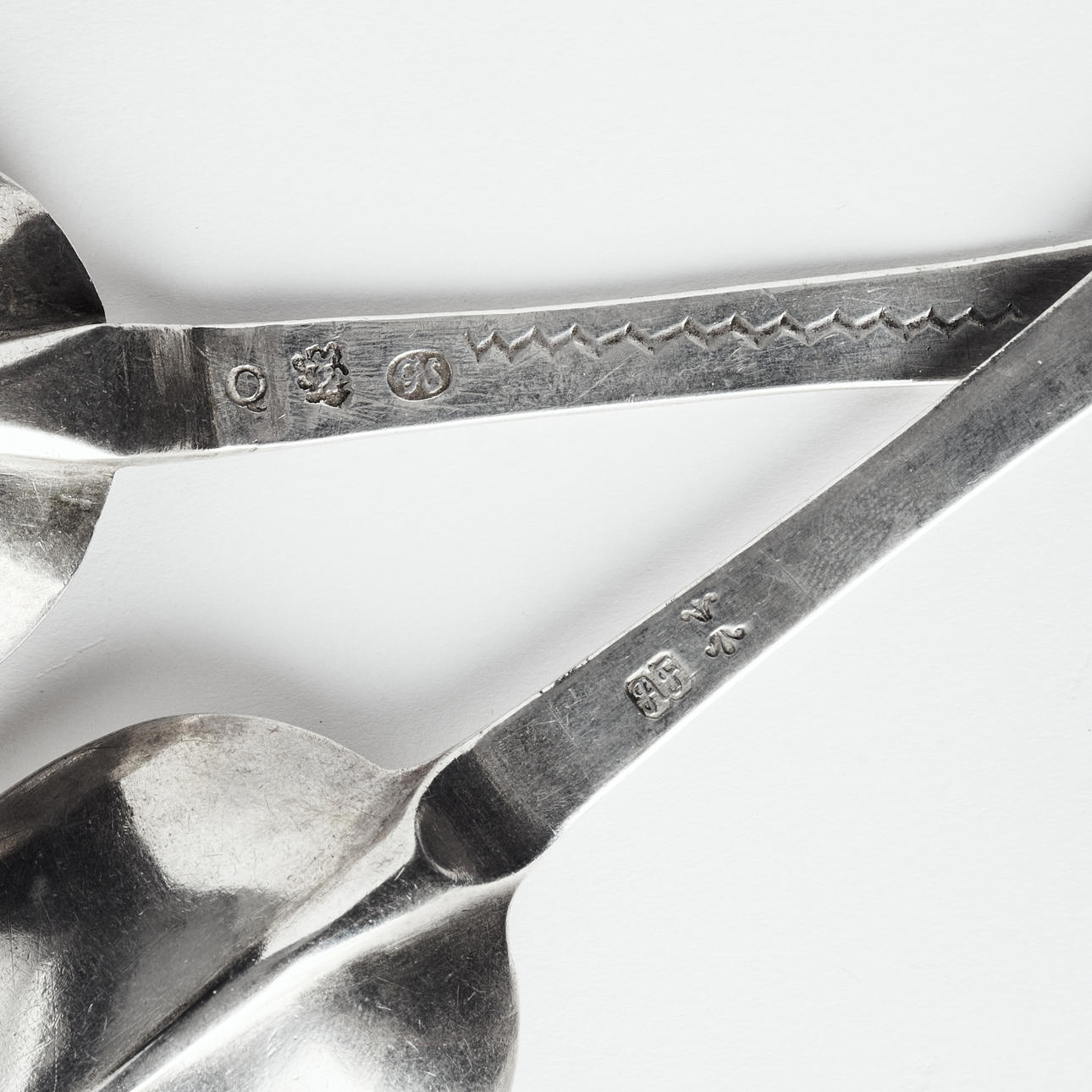 A spoon by Gustaf Stafhell d.ä., Stockholm 1728. A spoon by Carl Lilja, Stockholm 1719. A spoon by Anders Falck, Jönköping has no year index 1708-1739. L 18.5-21 cm. Total weight approx. 130 grams.