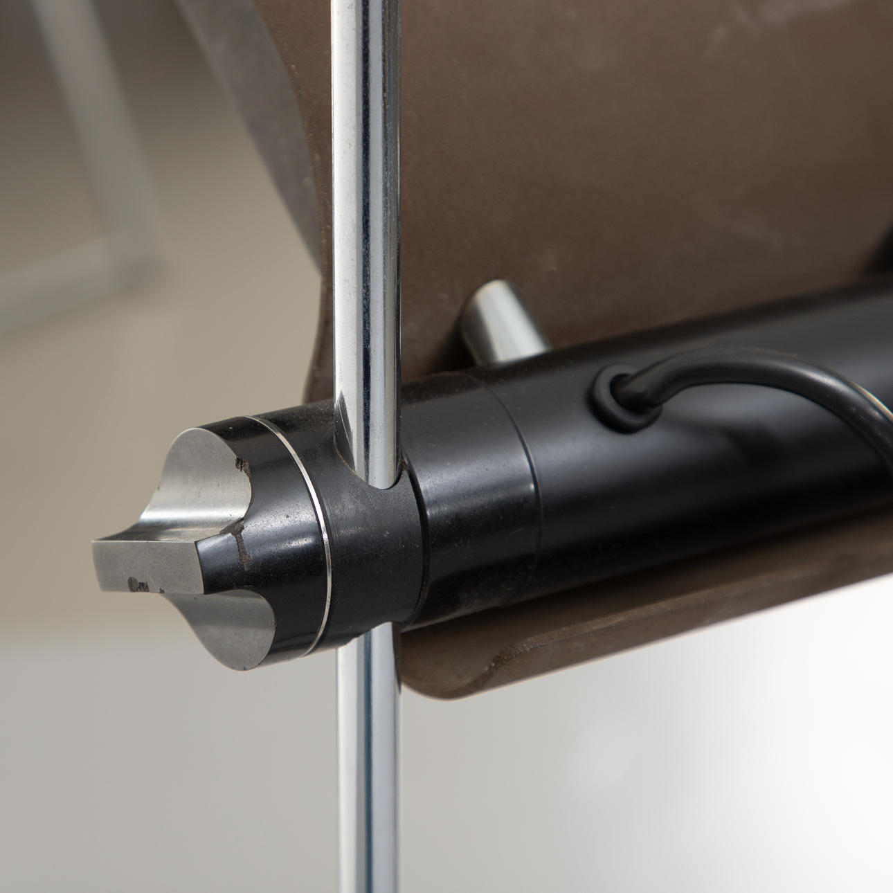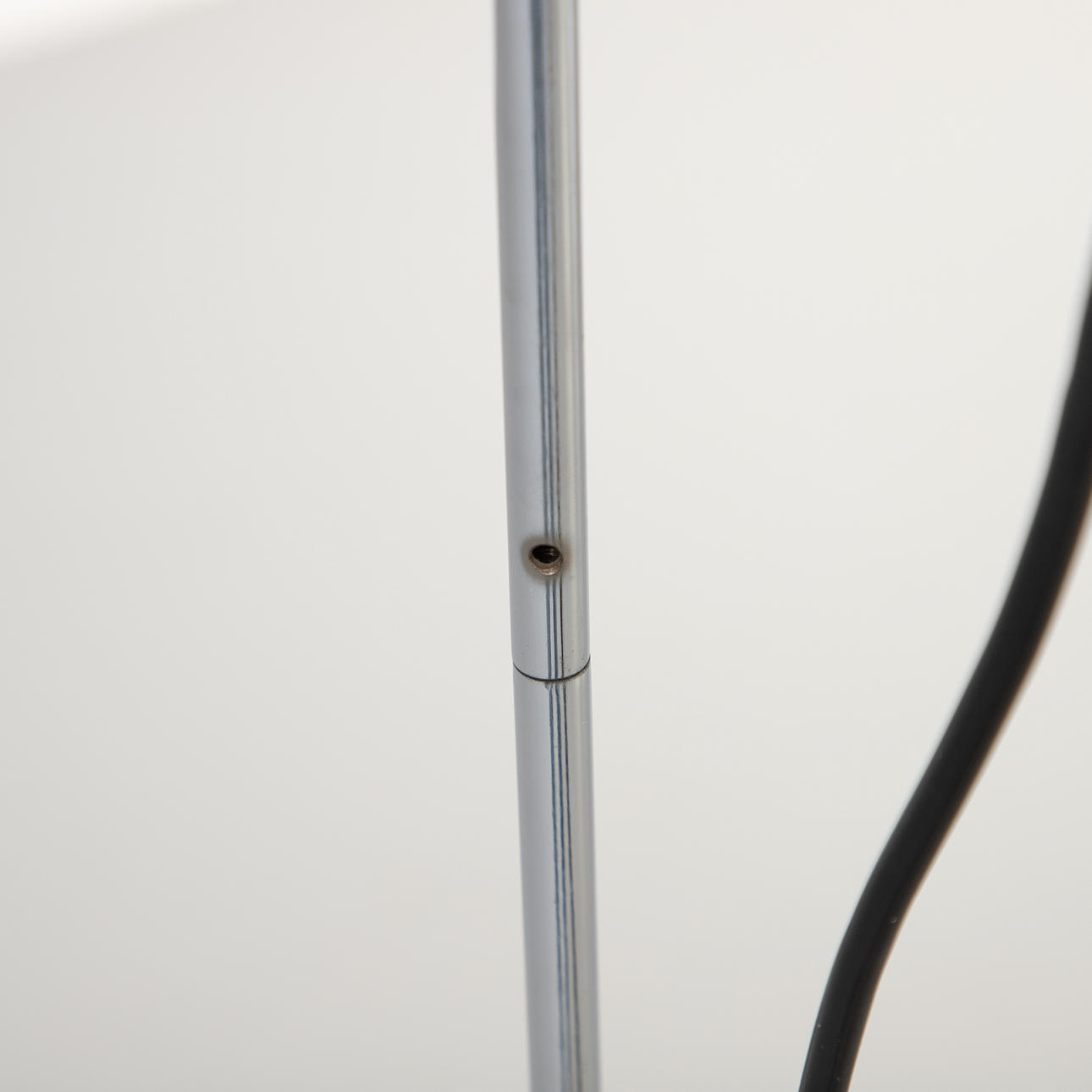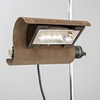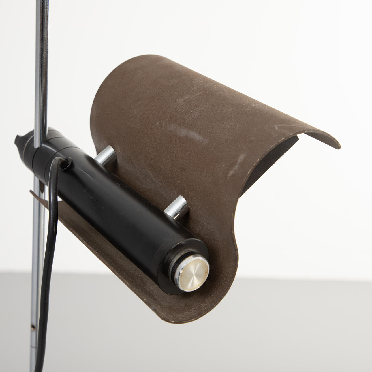 Chrome-plated and painted steel tube, S-shaped curved aluminum shade, tiltable, with halogen lamp.