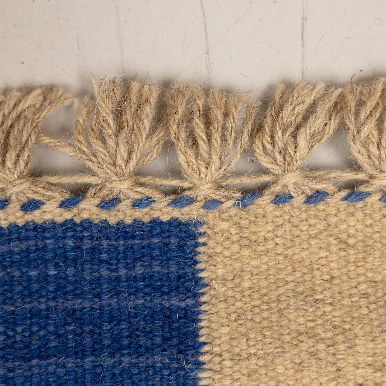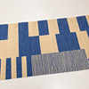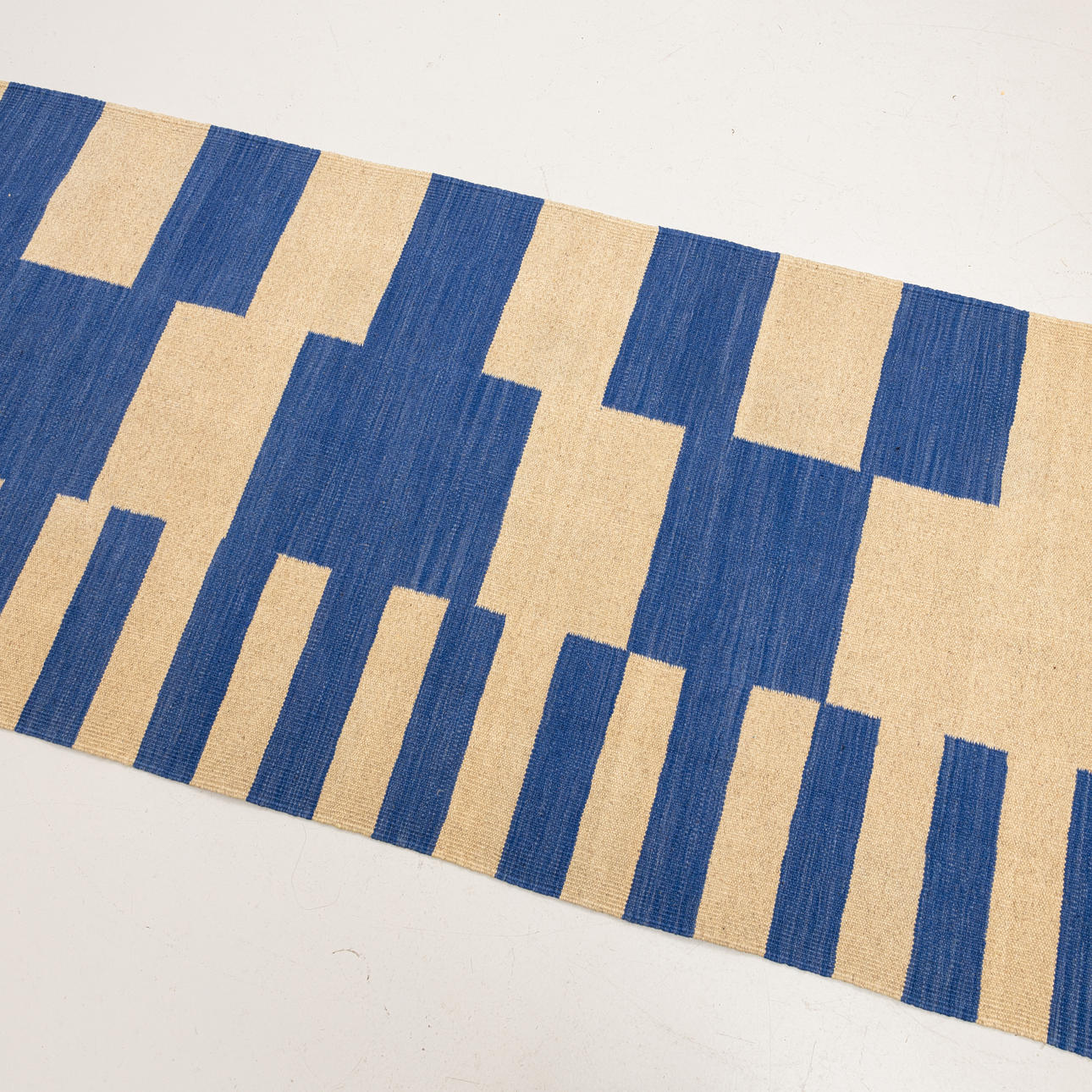 Rectangular and square pattern in blue and beige, approx. 343x92 cm.