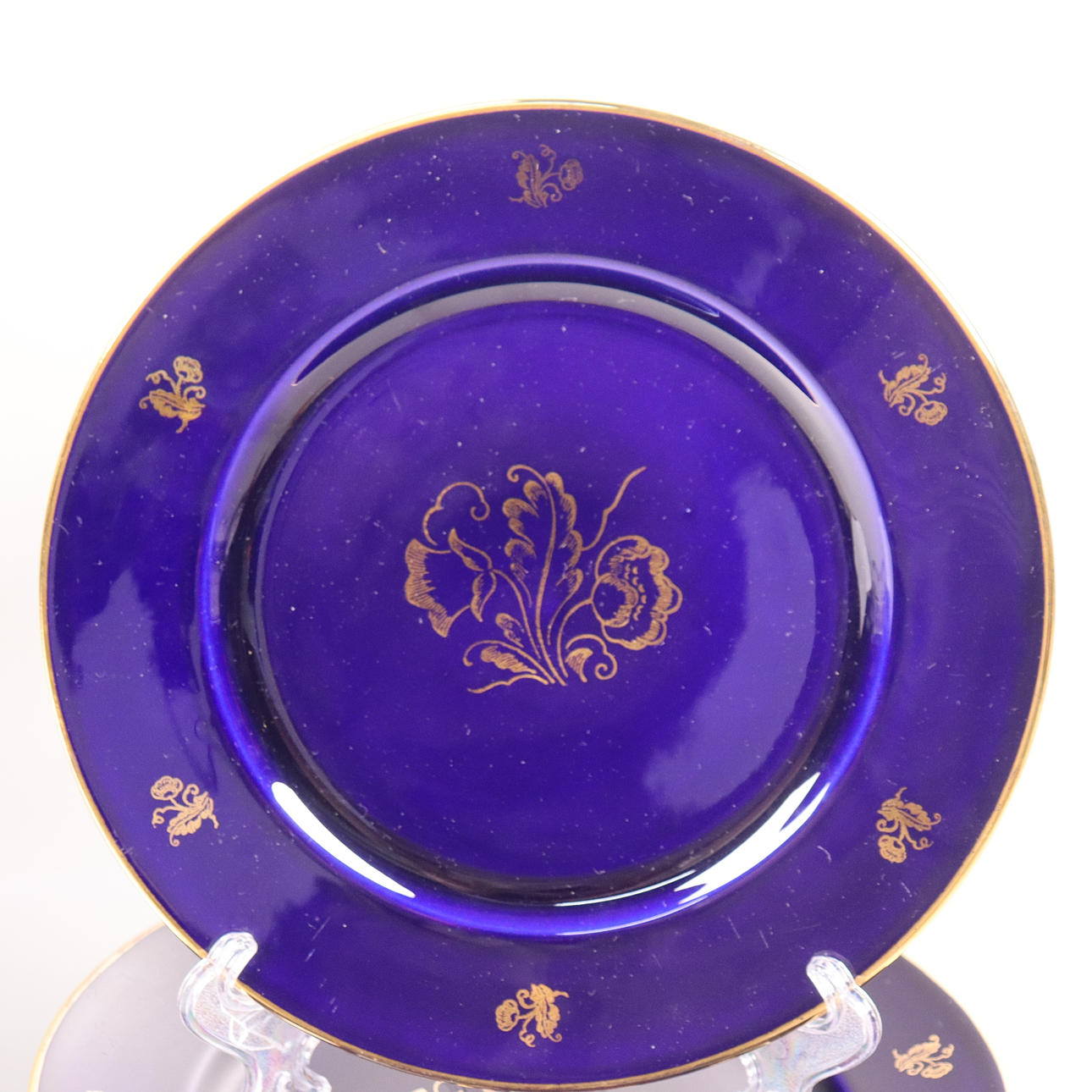 Cobalt blue with floral decor in gold.