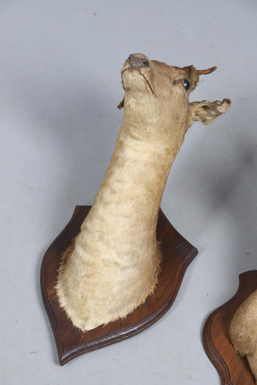 TAXIDERMY - TWO MOUNTED DEER'S HEADS.