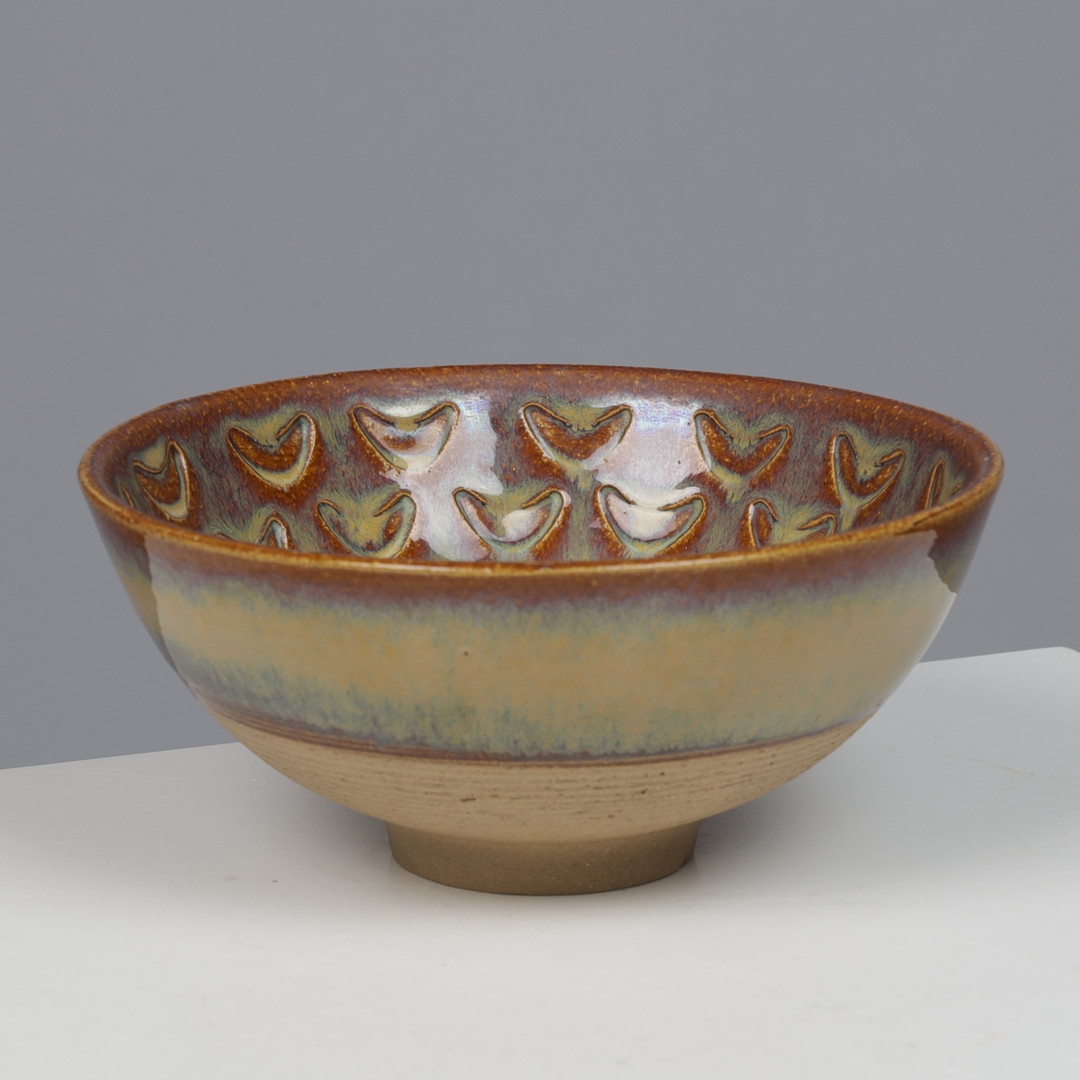 4543865. SØHOLM, set of three bowls in glazed stoneware with relief patterns, Bornholm, Denmark, 1950/60s (3).