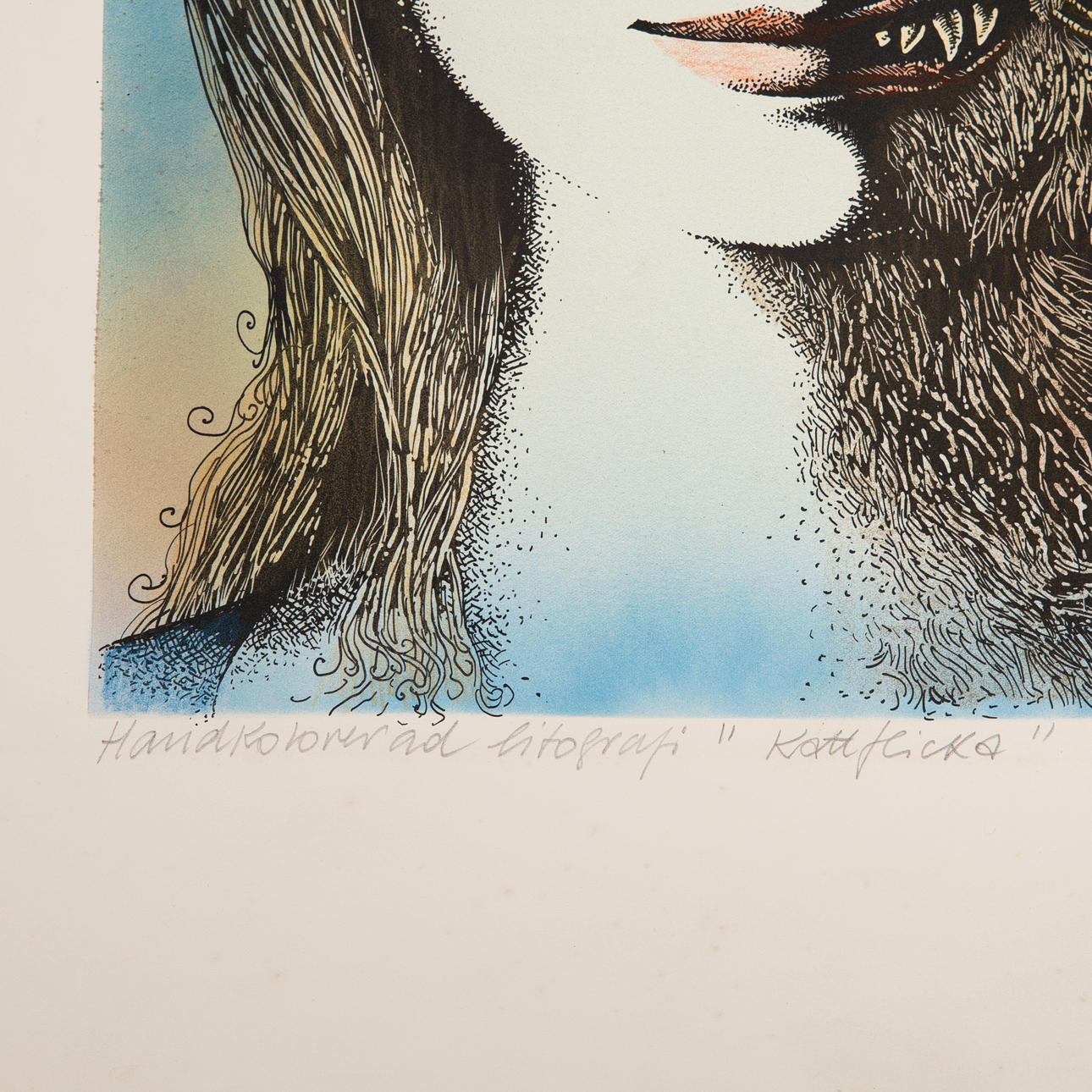 HANS ARNOLD. “Cat girl”, hand coloured, signed.