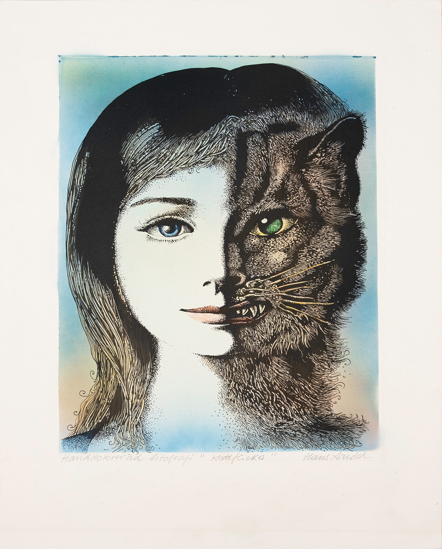 4544344. HANS ARNOLD. “Cat girl”, hand coloured, signed.