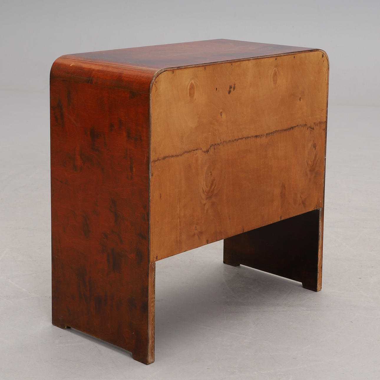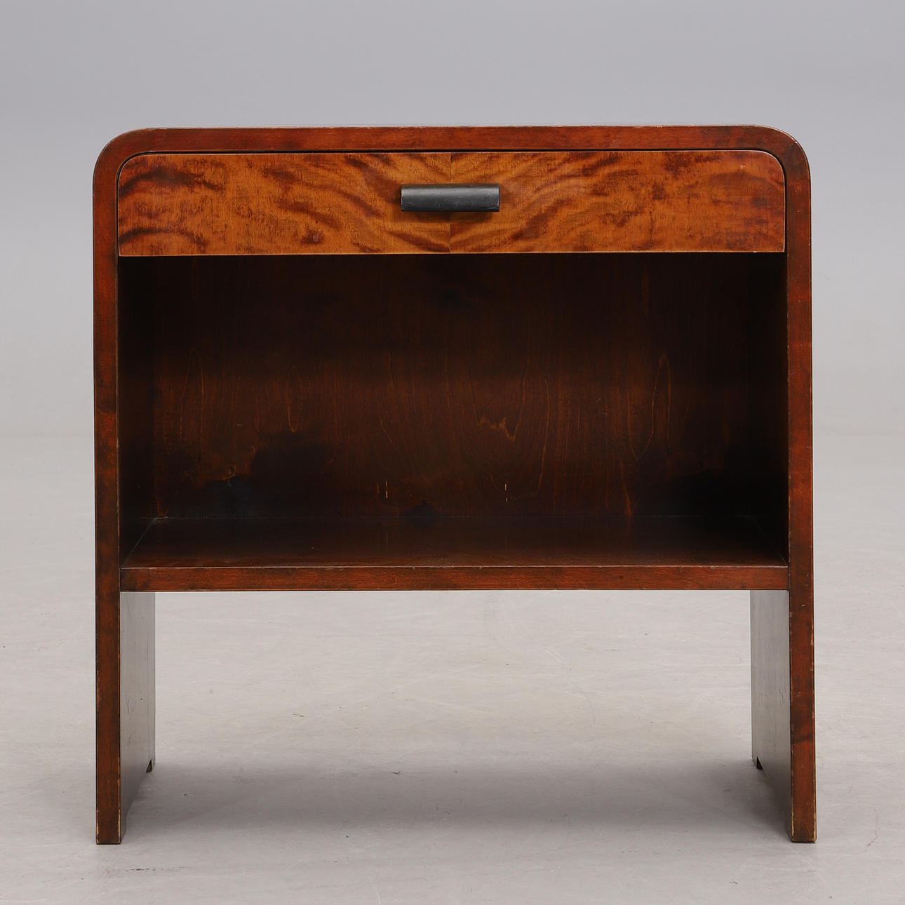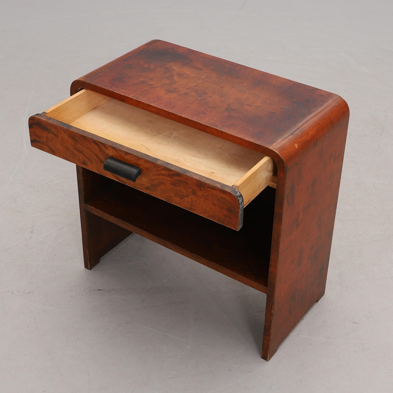 Veneered in boned birch. Drawer and shelf underneath. Length 60 cm. Depth 30 cm. Height 60 cm.