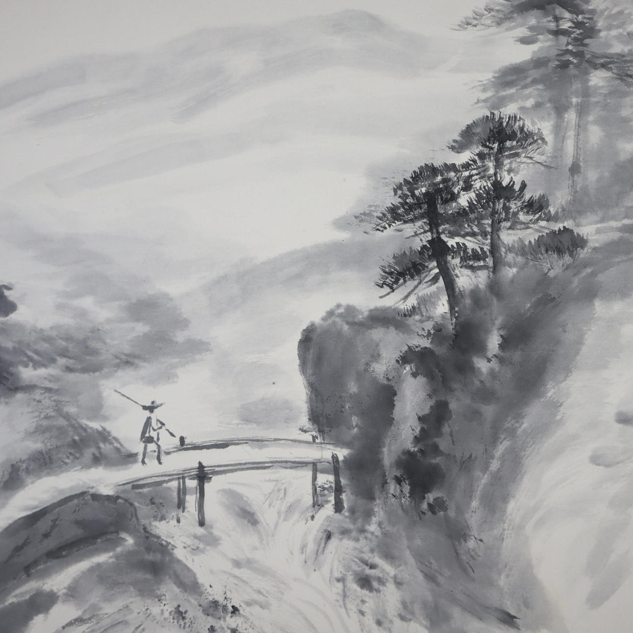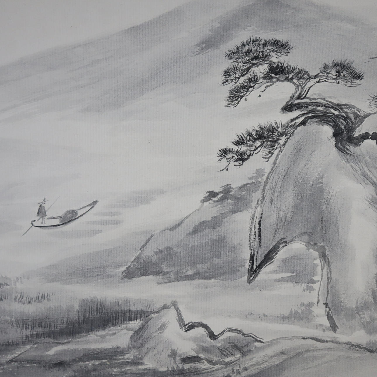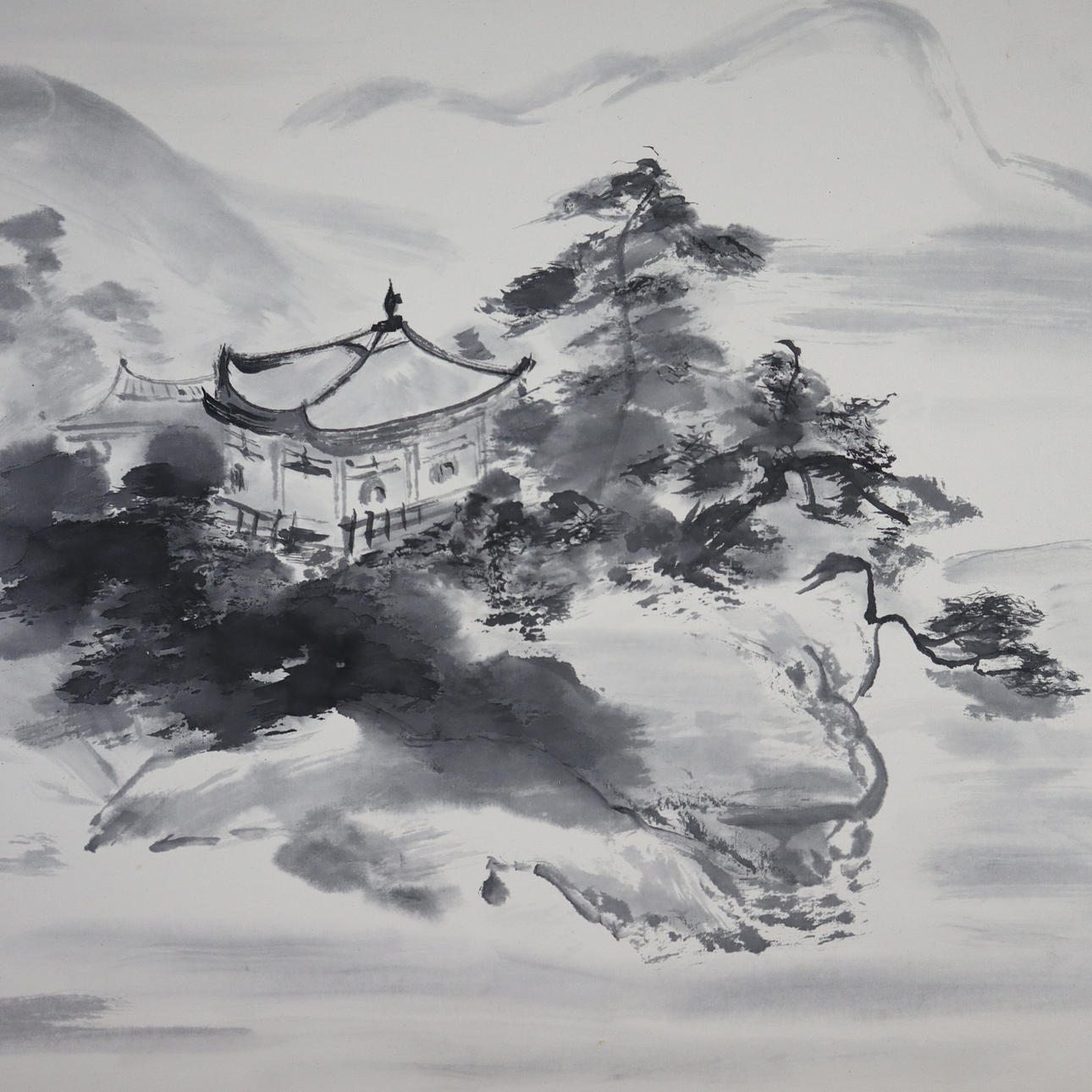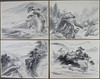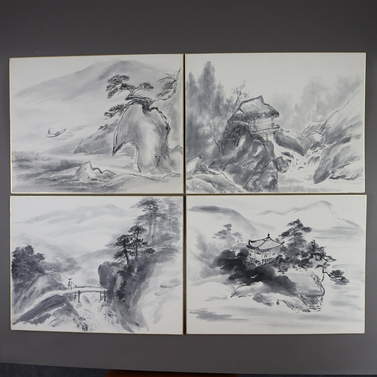 -20th century- Various landscapes, 4 pieces, ink on paper, signed once, approx. 31.5 x 40.5 cm mounted on cardboard, unframed.