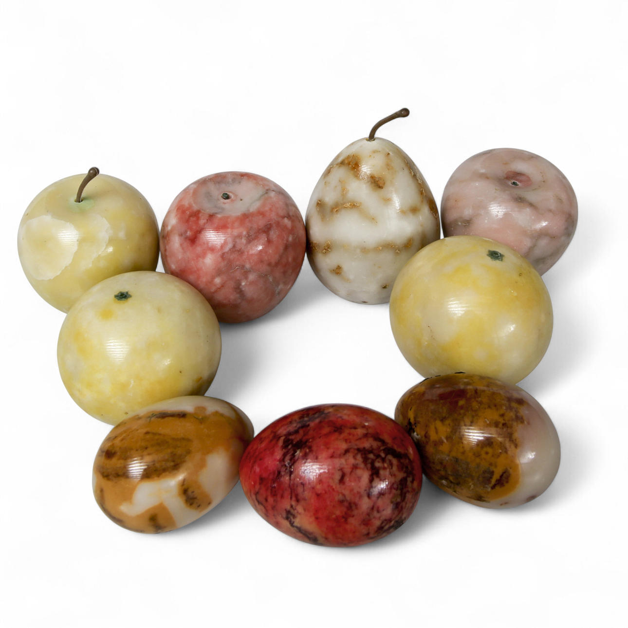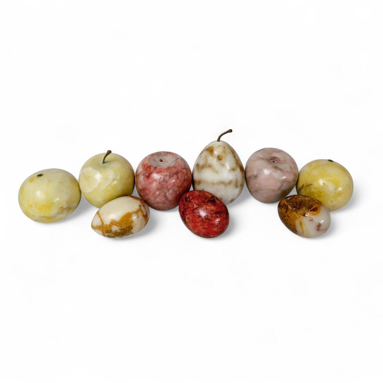 4546206. STONE EGGS AND STONE FRUITS, alabaster, 9 pieces.