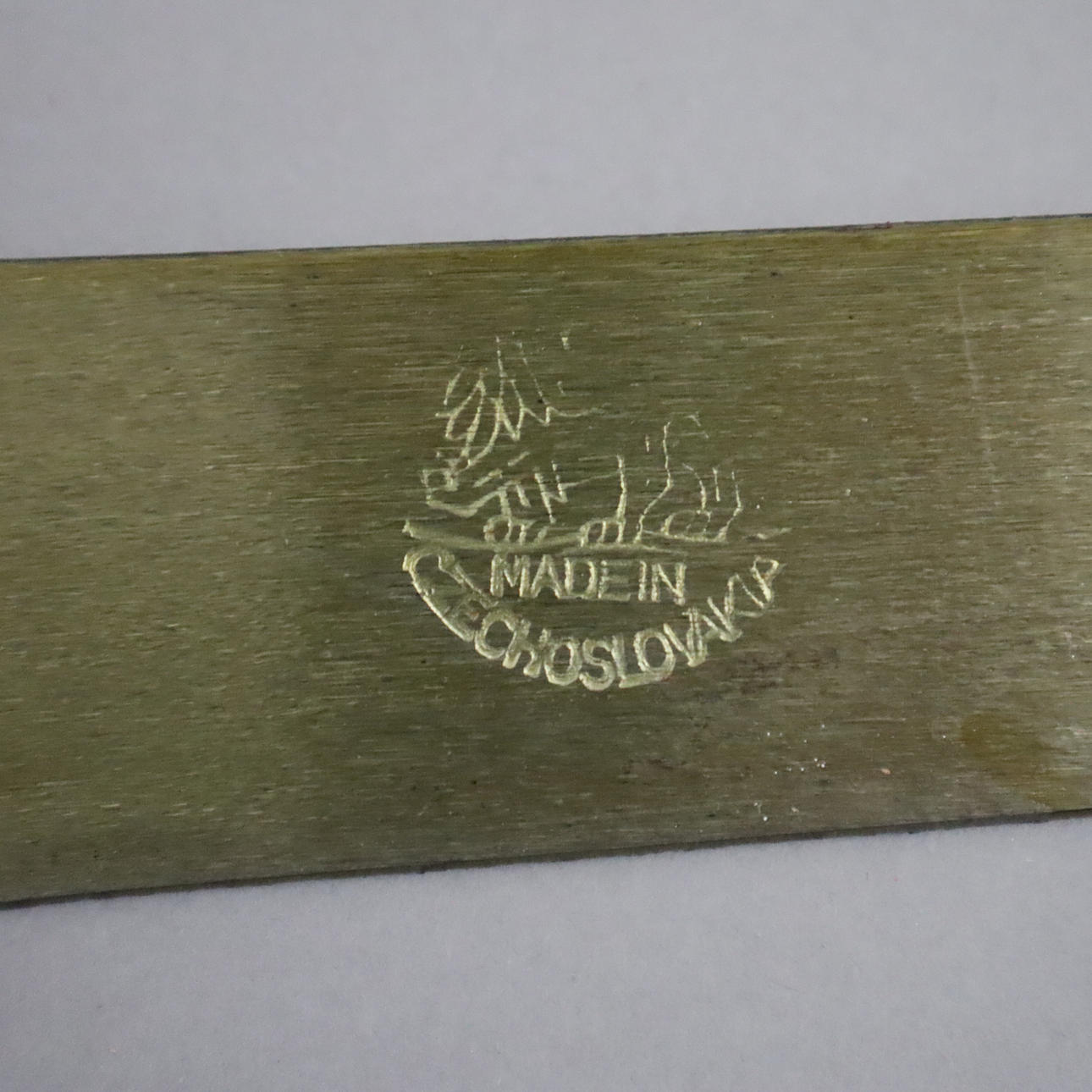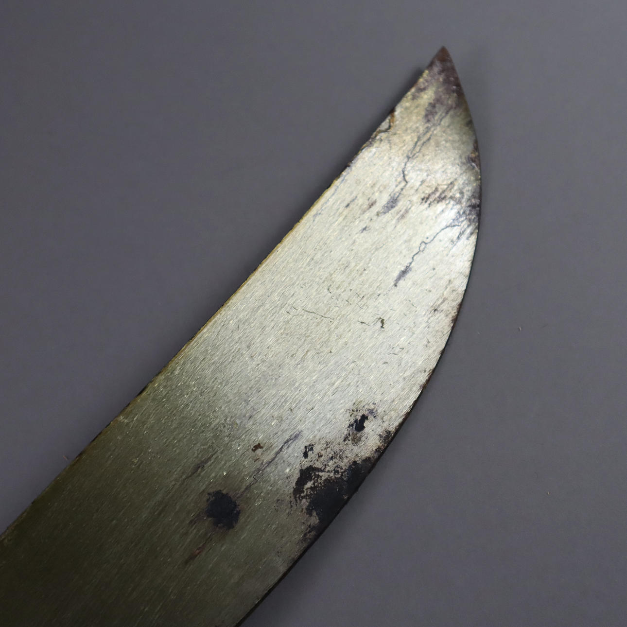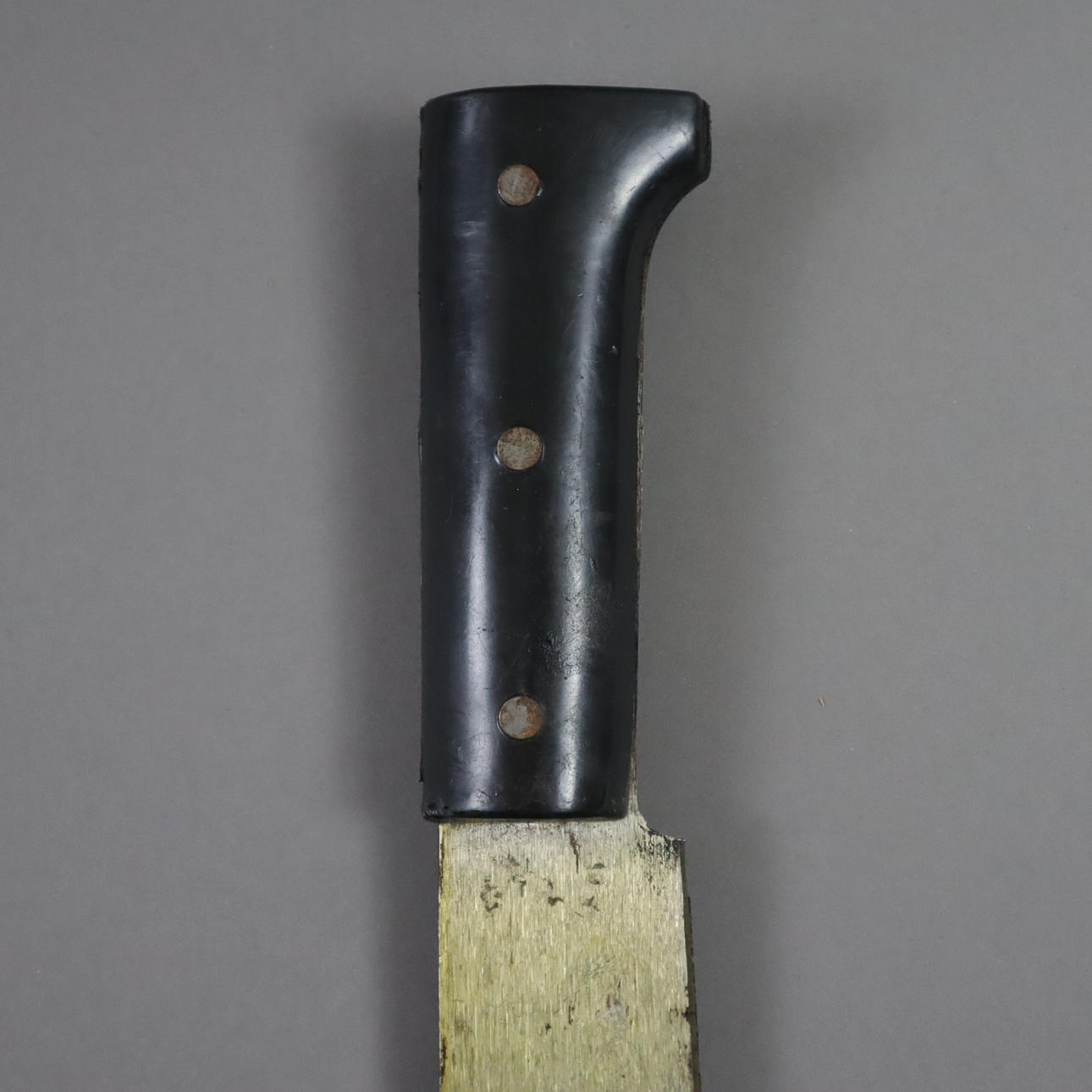 riveted wooden handles, blade length approx. 41 cm, total length approx. 53 cm, fabric sheath, signs of age.