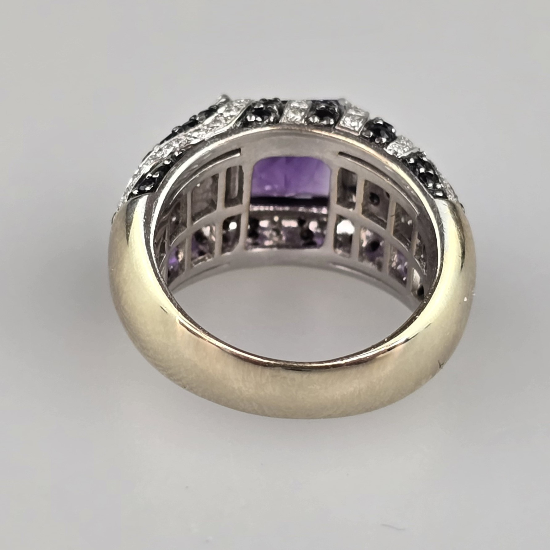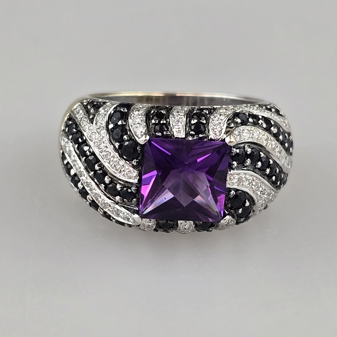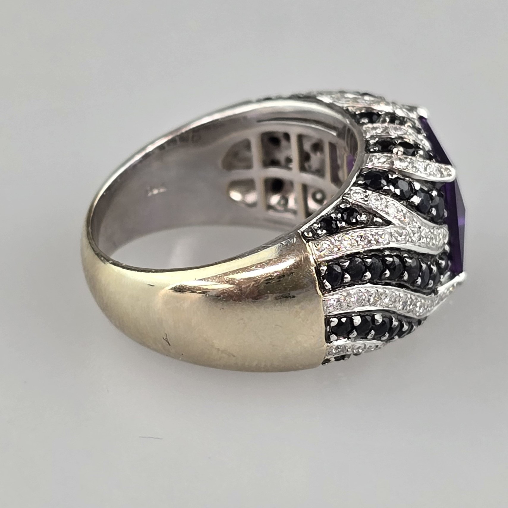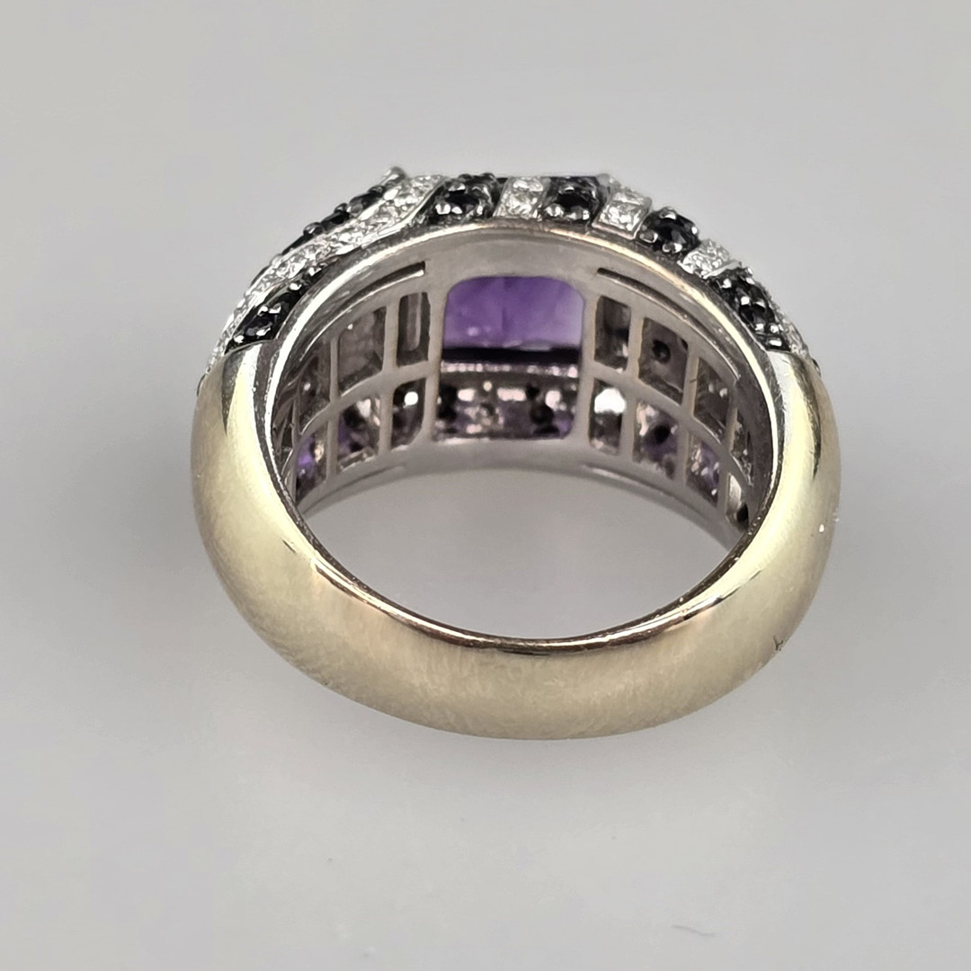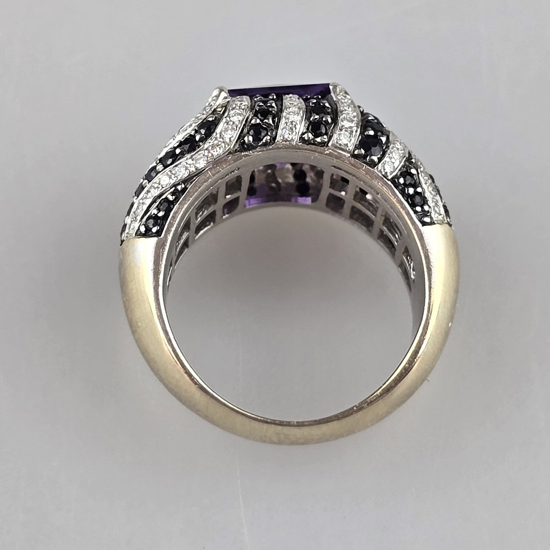 4548868. UNUSUAL 18K DIAMOND/AMETHYST RING.