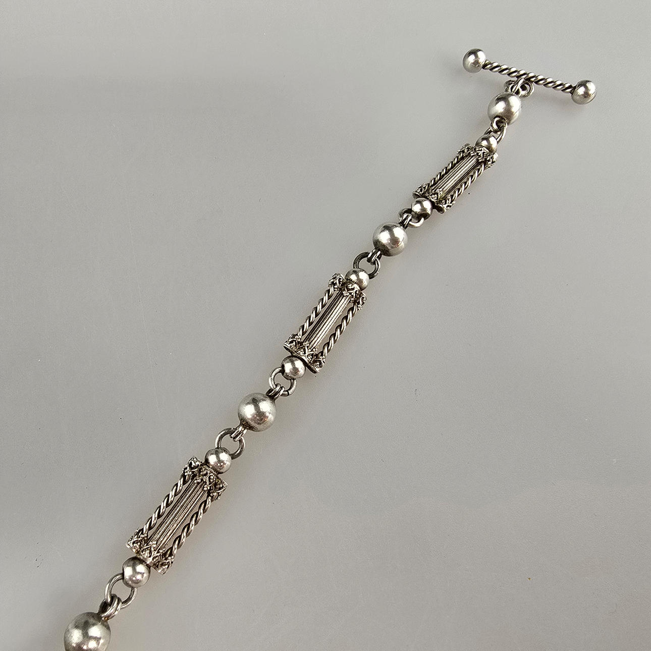 link chain consisting of five cylindrical, twisted links, alternating with spherical intermediate elements, L. 26 cm, Weight ca. 17g.